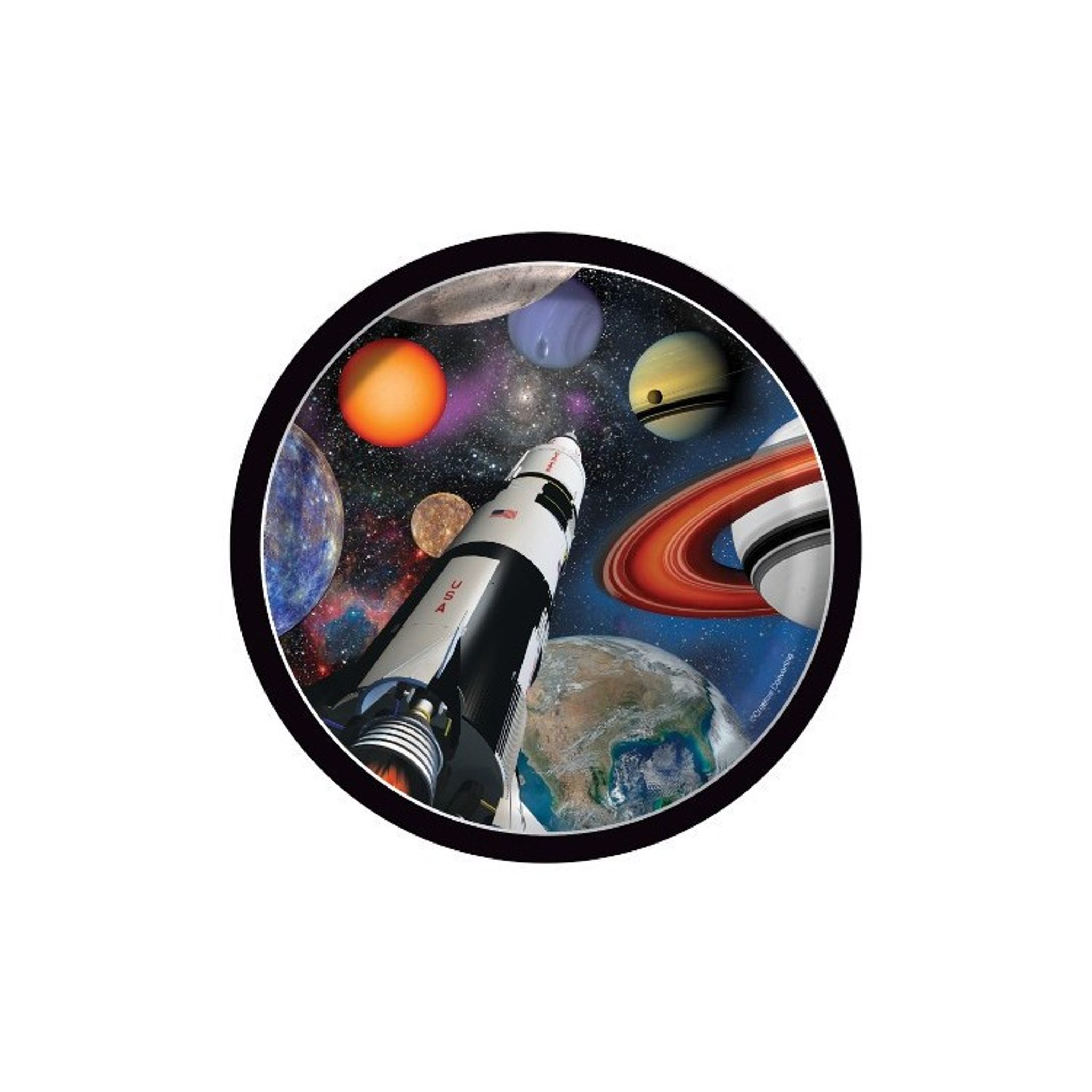 Duka upp till ett fint barnkalas med kul rymd-tema och bjud in till födelsedagsfest. Dessa assietter med motiv av ett rymdskepp och planeter blir perfekt att servera födelsedagstårtan på. Matcha gärna med övriga fina kalastillbehör i samma serie. Du får 8 st assietter med fint rymd-motiv som är 17 cm.