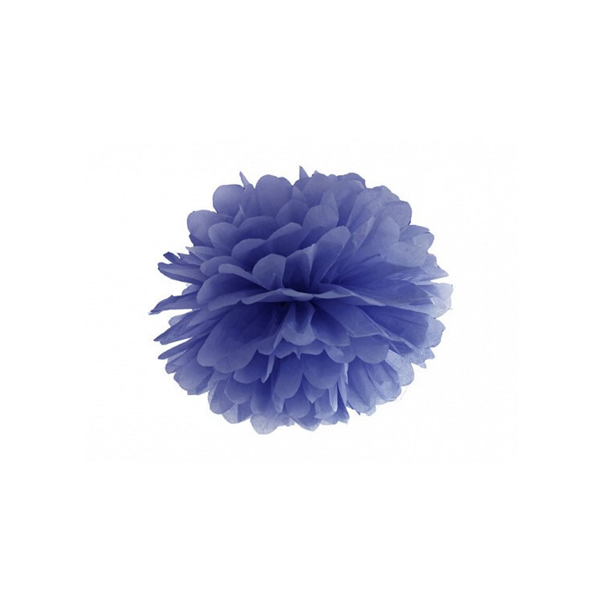Snygg pappersboll ska pom pom i en mörkblå nyans. Perfekt att vecka ut och använda som dekoration på festen.