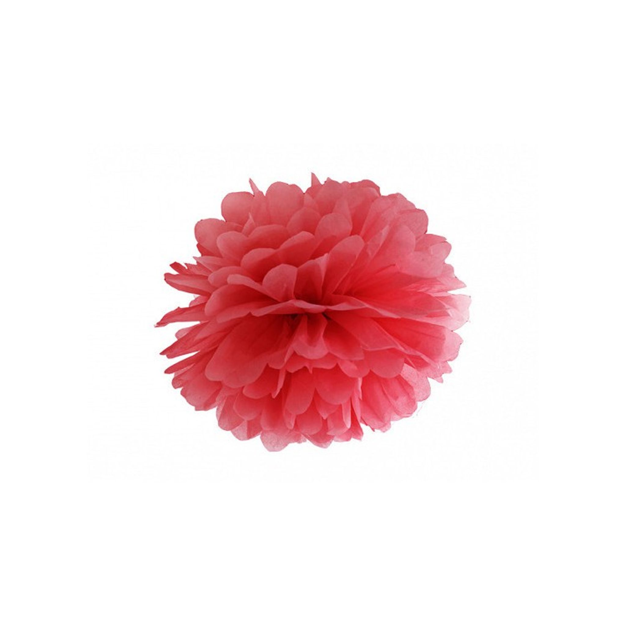 Röd dekorationsboll av papper att hänga upp som dekoration på kalaset.