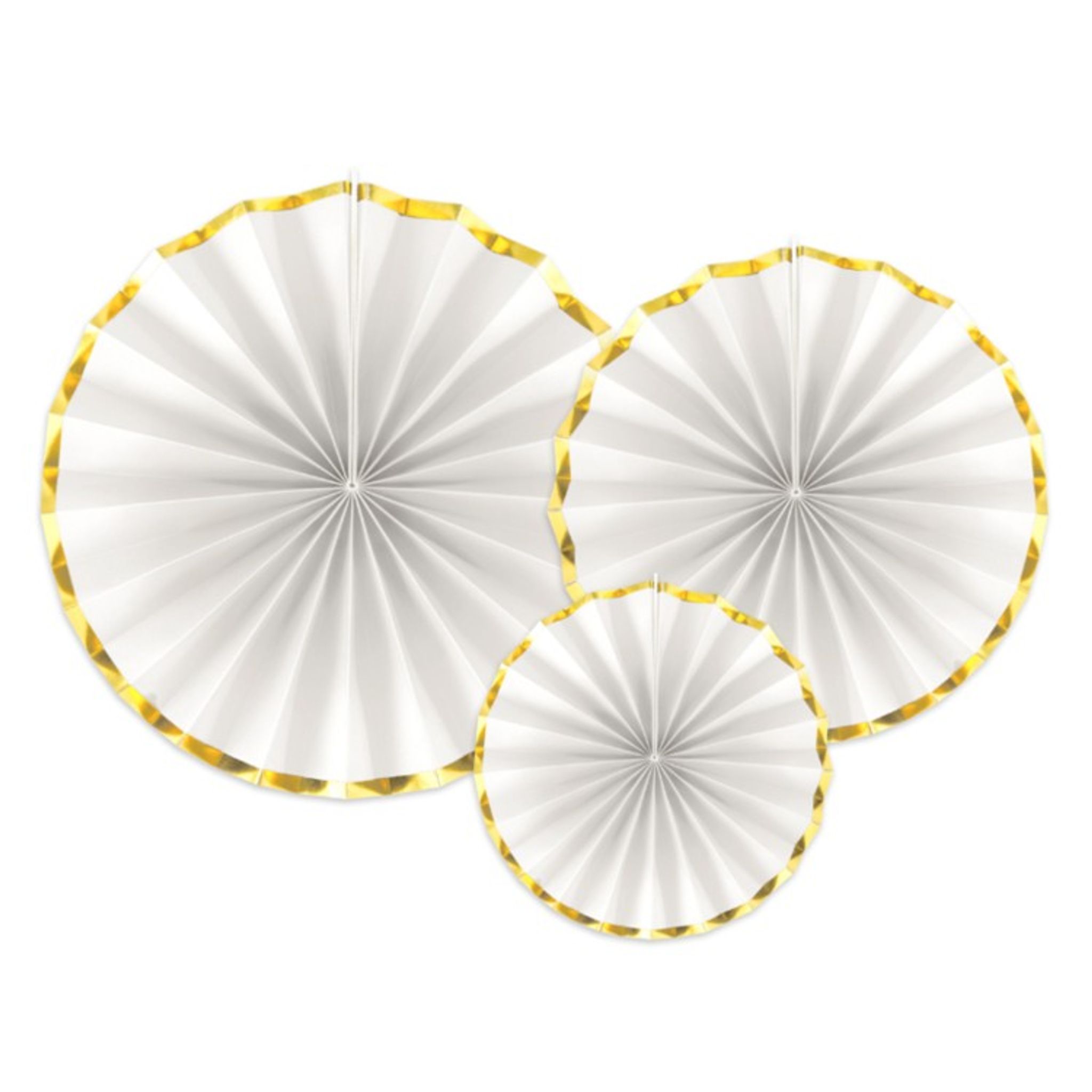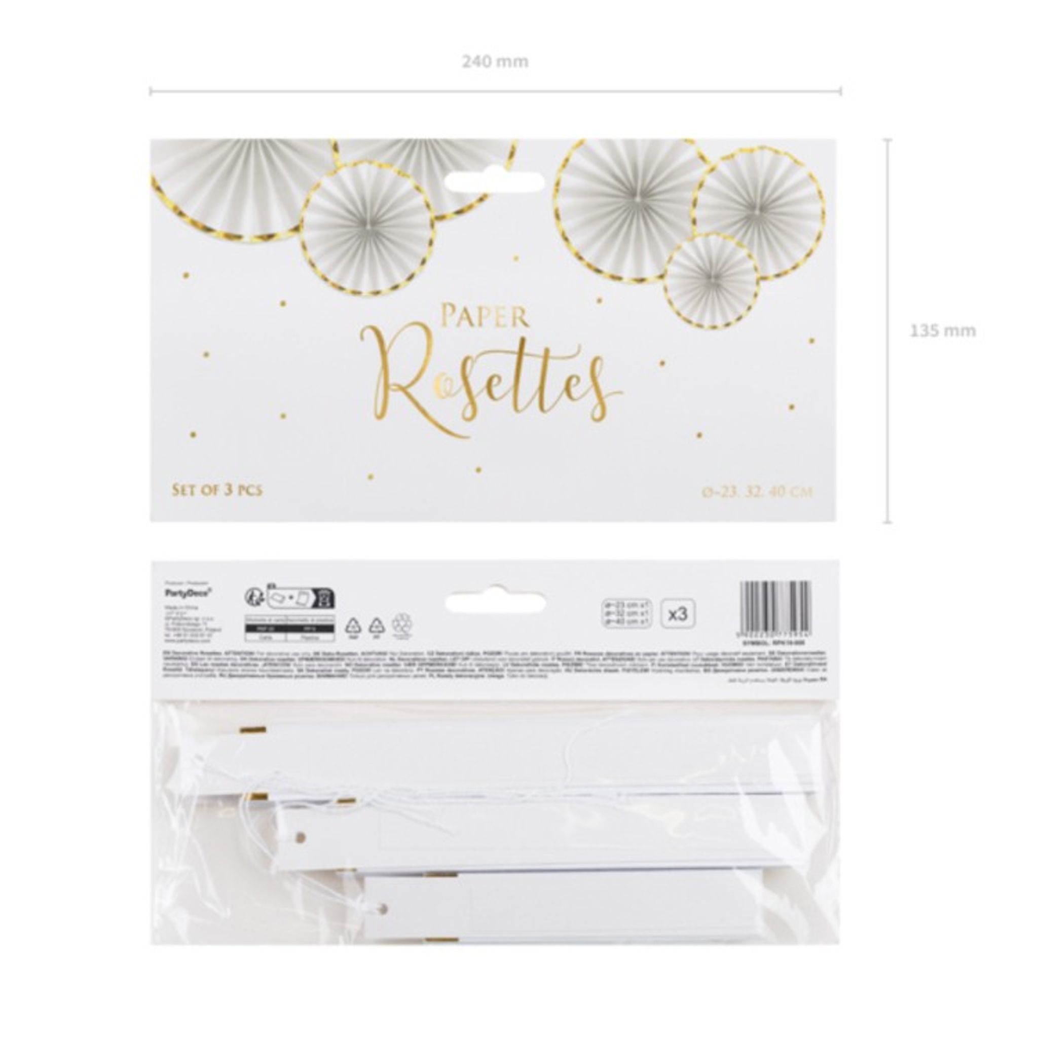 Set med 3 stycken pappersmånar, vita med guldkant. Häng upp dekorationerna för att enkelt skapa en härlig feststämning både på kalas eller bröllop. Storlek på månarna är ca 23 cm, 32 cm och 40 cm