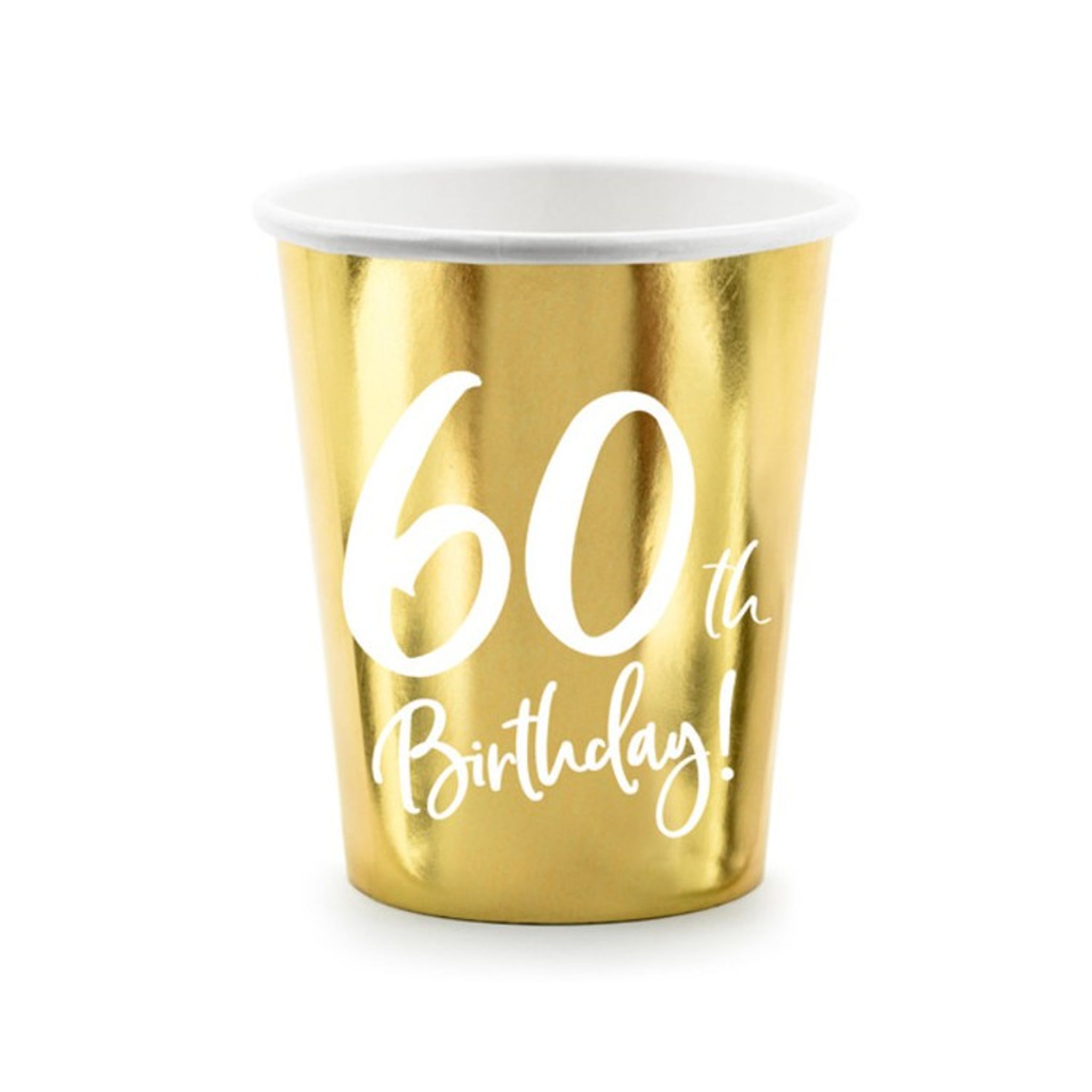 Engångsmuggar i guld för dig som vill fira 60 årsdagen med en snygg dukning. Matcha gärna med övriga produkter i samma serie. Antal: 6 st Storlek: 220 ml, höjd ca 9 cm