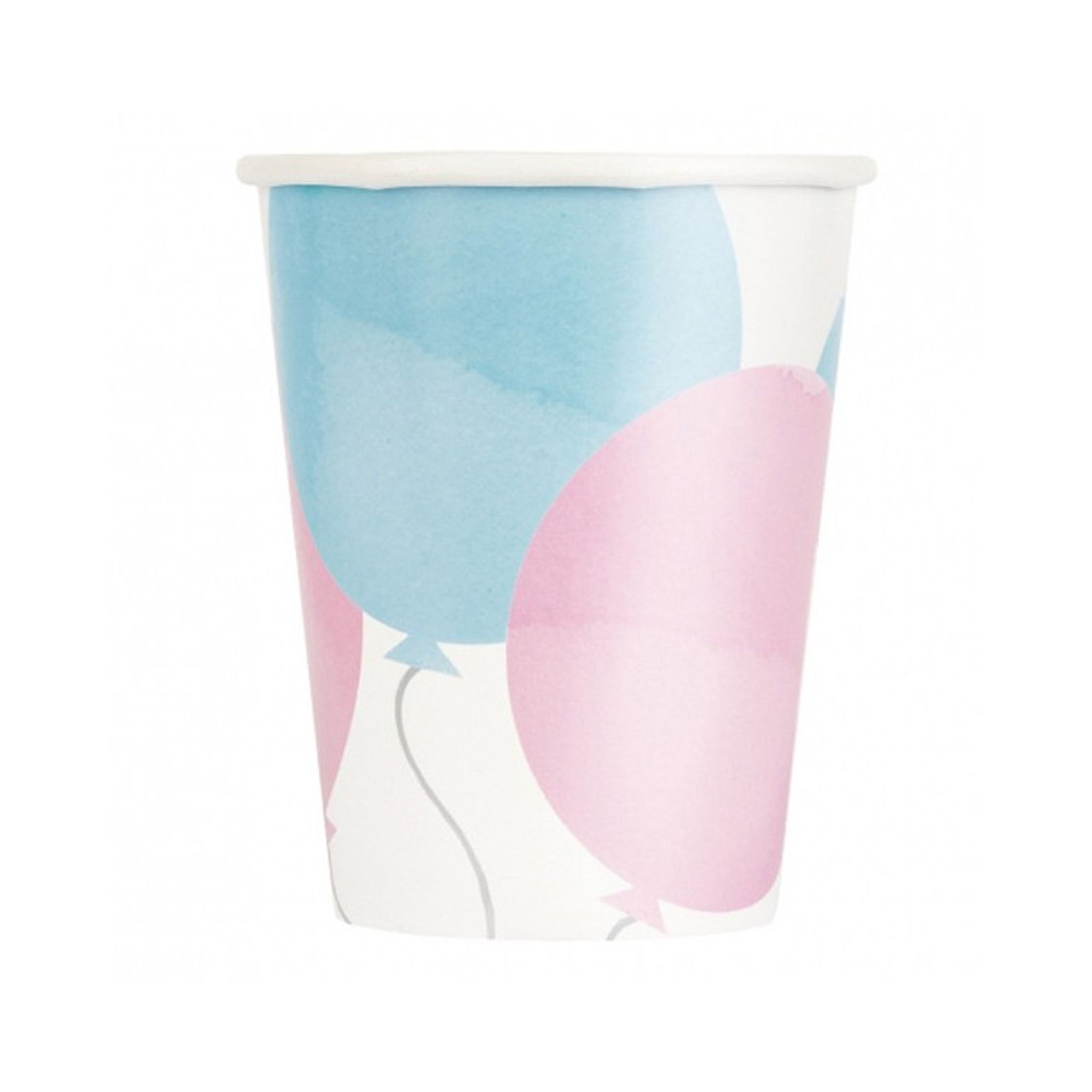 Gender reveal party eller babyshower? Servera drycken ur dessa härliga pappersmuggar med blåa och rosa ballonger på! De är också perfekta för barnkalaset som går i söta pastellfärger.
