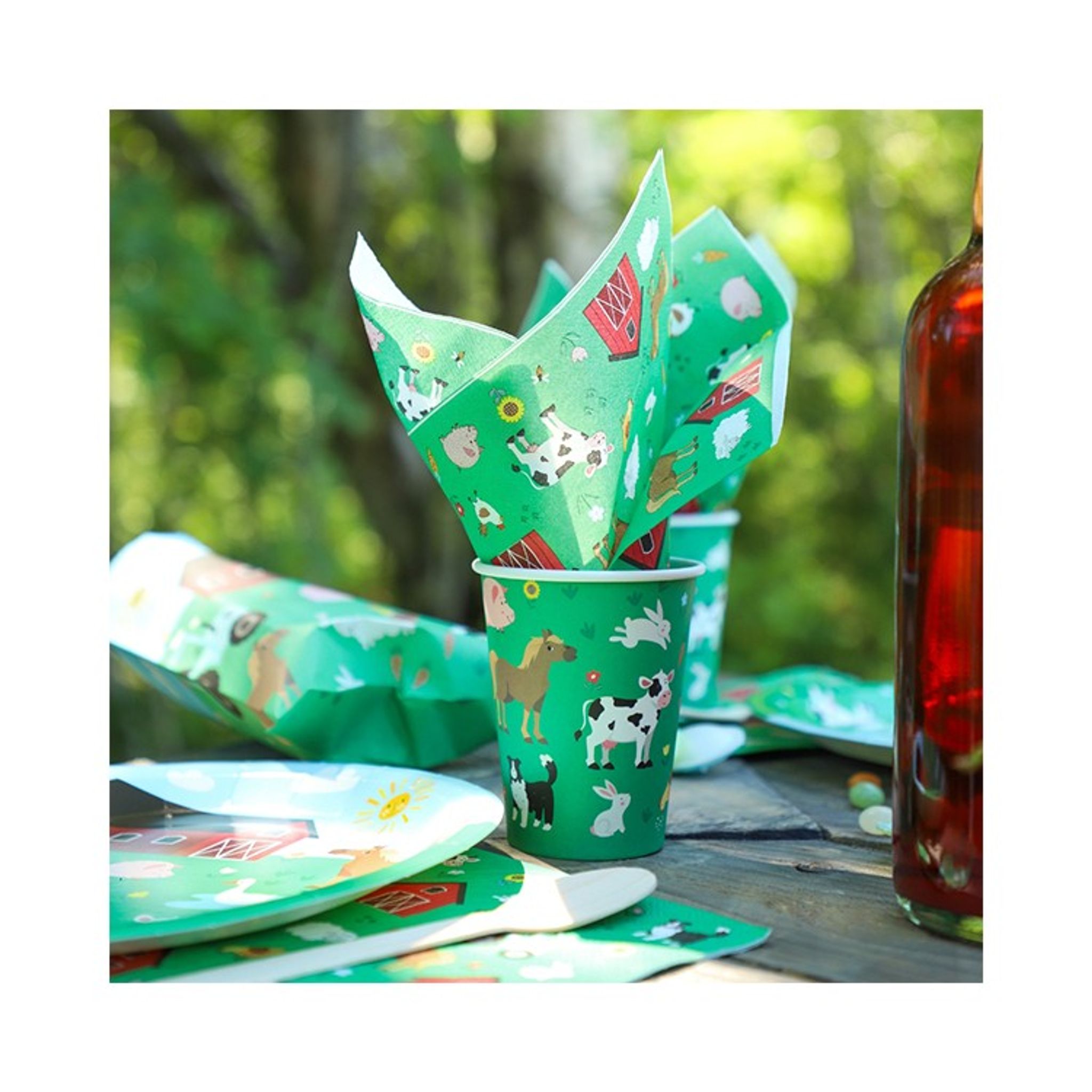 Duka upp för ett ur gulligt bondgårdskalas. Dessa bedårande muggar i grönt med bondgårdsmotiv är perfekta för att charma dina gäster. Förpackningen innehåller 8 st muggar