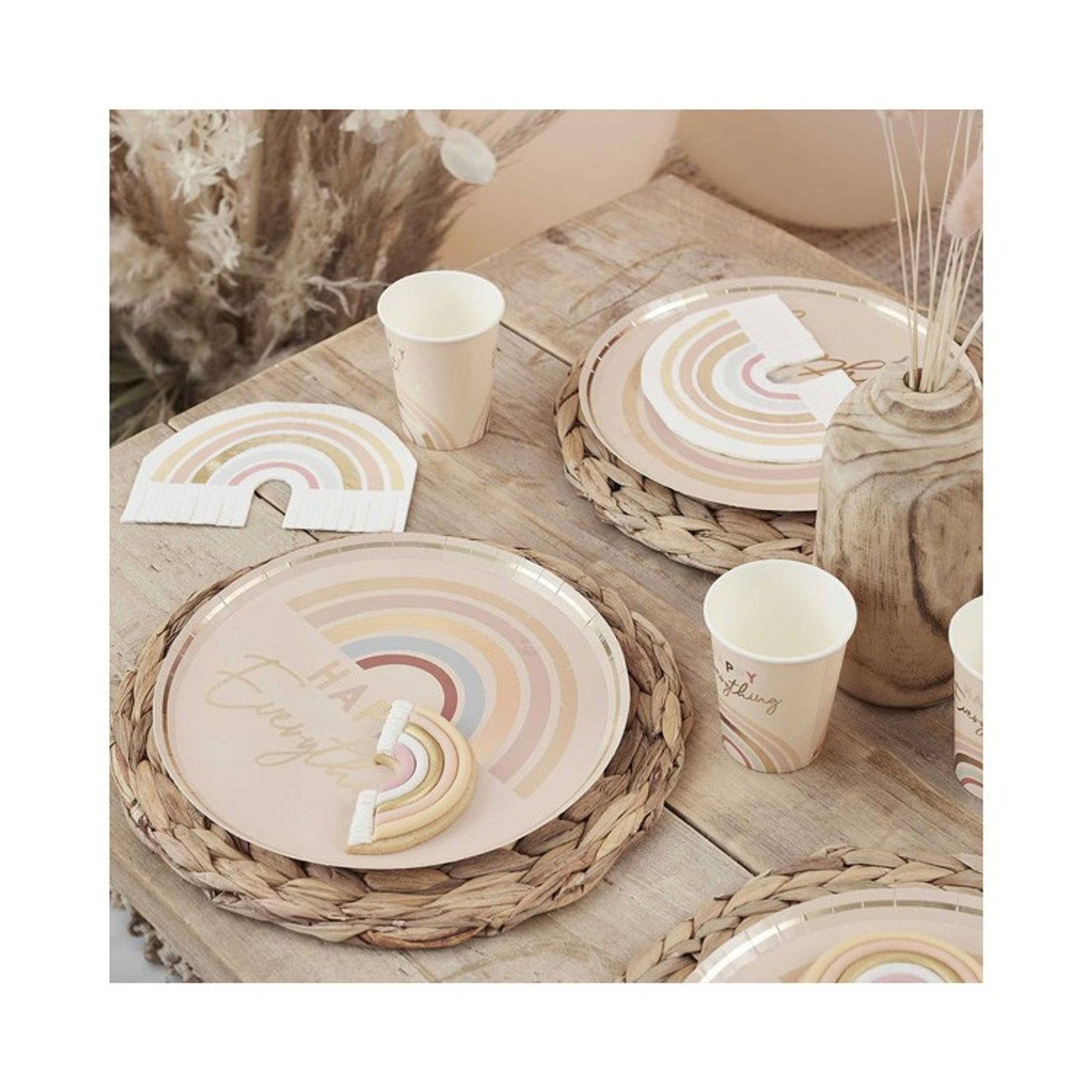 Den unika pastellfärgade designen har guldfolierade inslag för att ge lite glitter till din regnbågsfest! Använd gärna matchande pastellfärgade regnbågstallrikar för att skapa den perfekta festdukningen! Perfekt att använda till alla typer av festligheter.