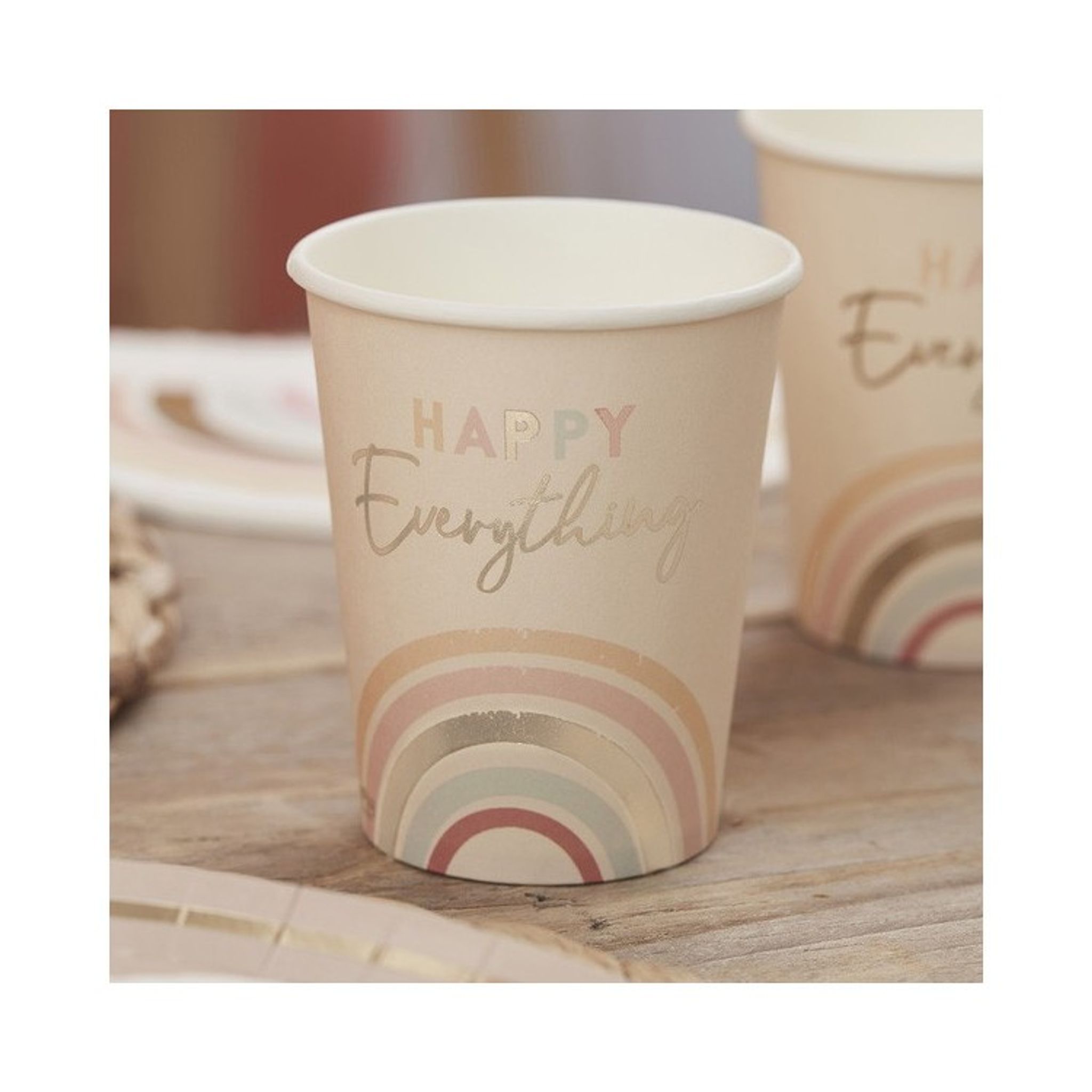 Använd våra underbara Happy Everything-pappersmuggar på din nästa fest för att förgylla din festdukning.