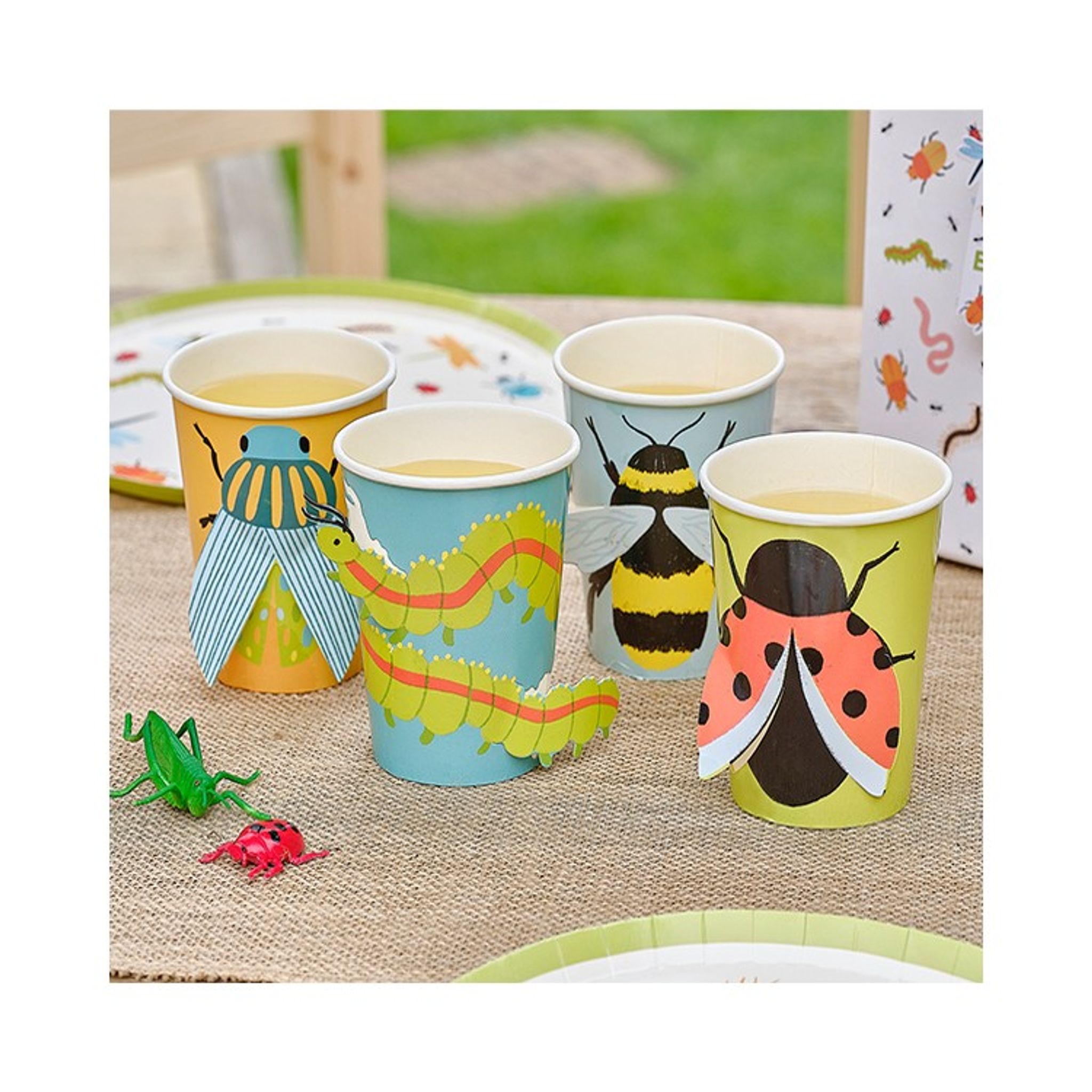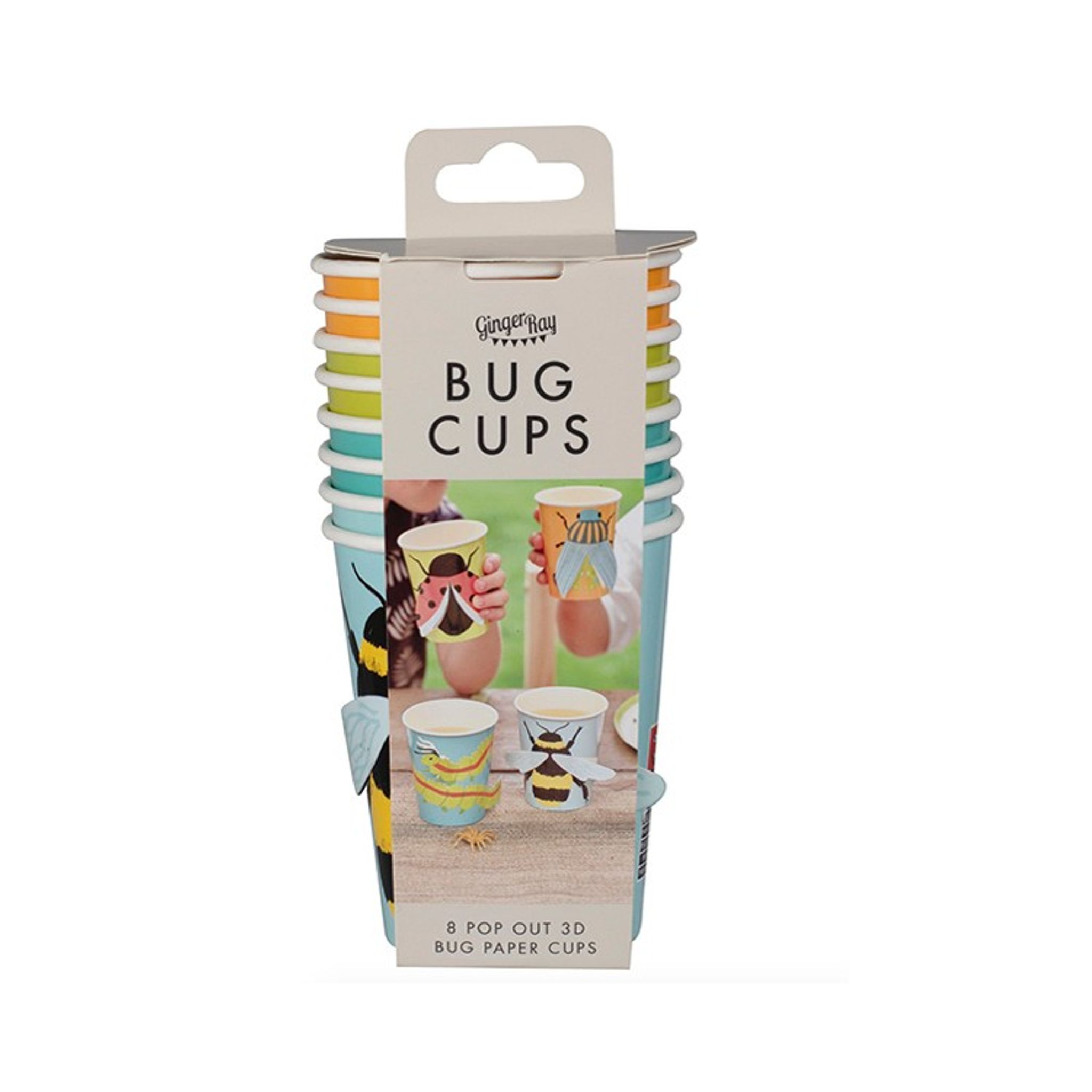 Färgglada Pappersmuggar med pop out motiv av härliga insekter. Priset avser 8 stycken muggar med fyra olika motiv. Höjd: 11 cm Matcha gärna muggarna tillsammans med våra andra produkter i samma serie.