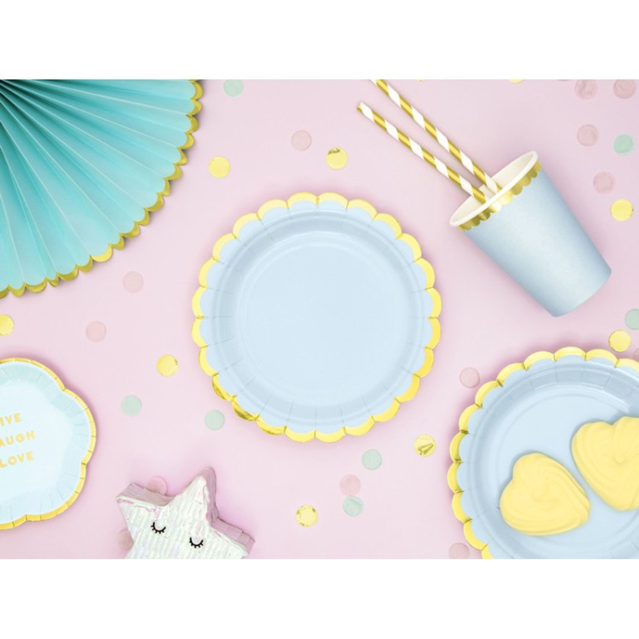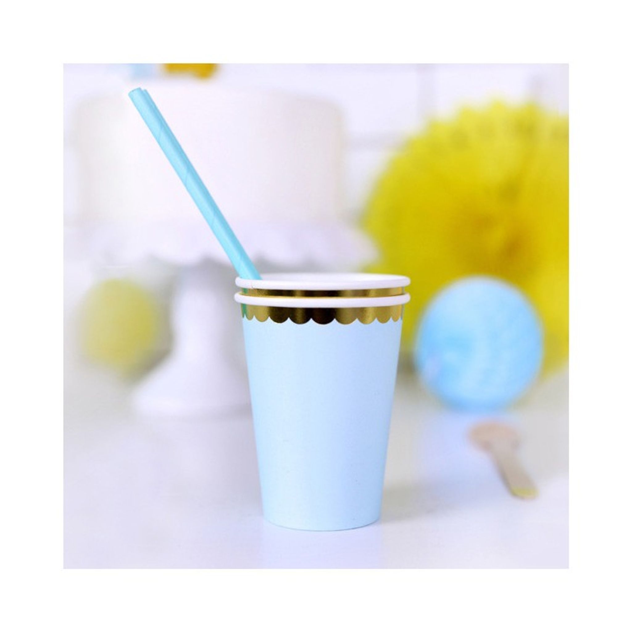 Pappersmuggar Ljusblå med Guldkant