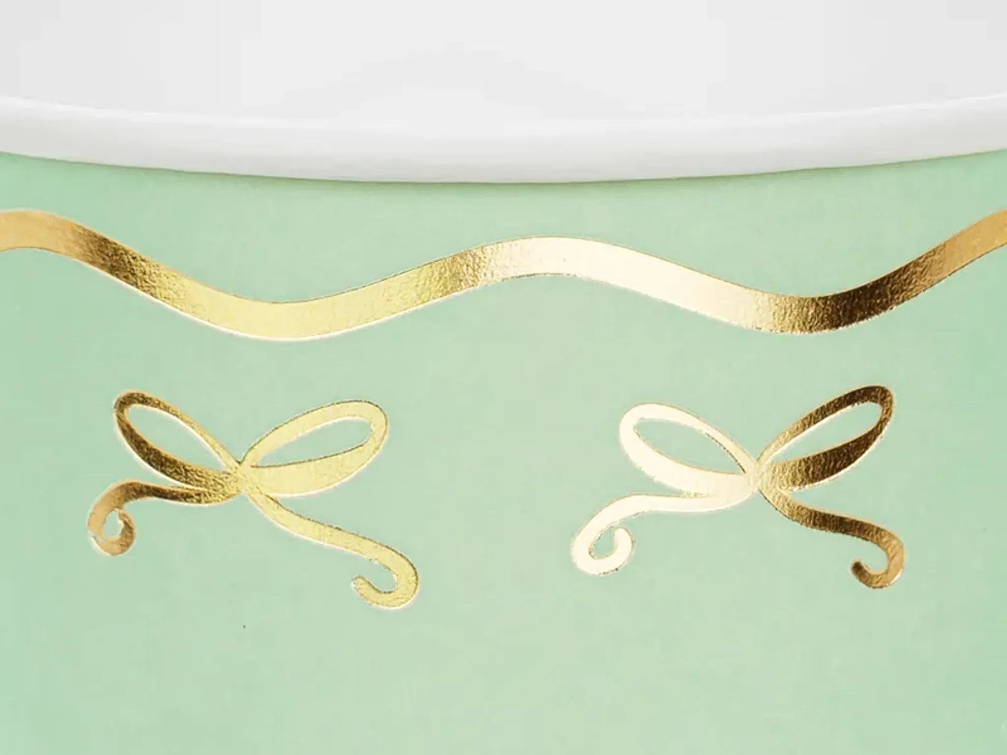 Pappersmuggar med pastellfärger och gulddetaljer