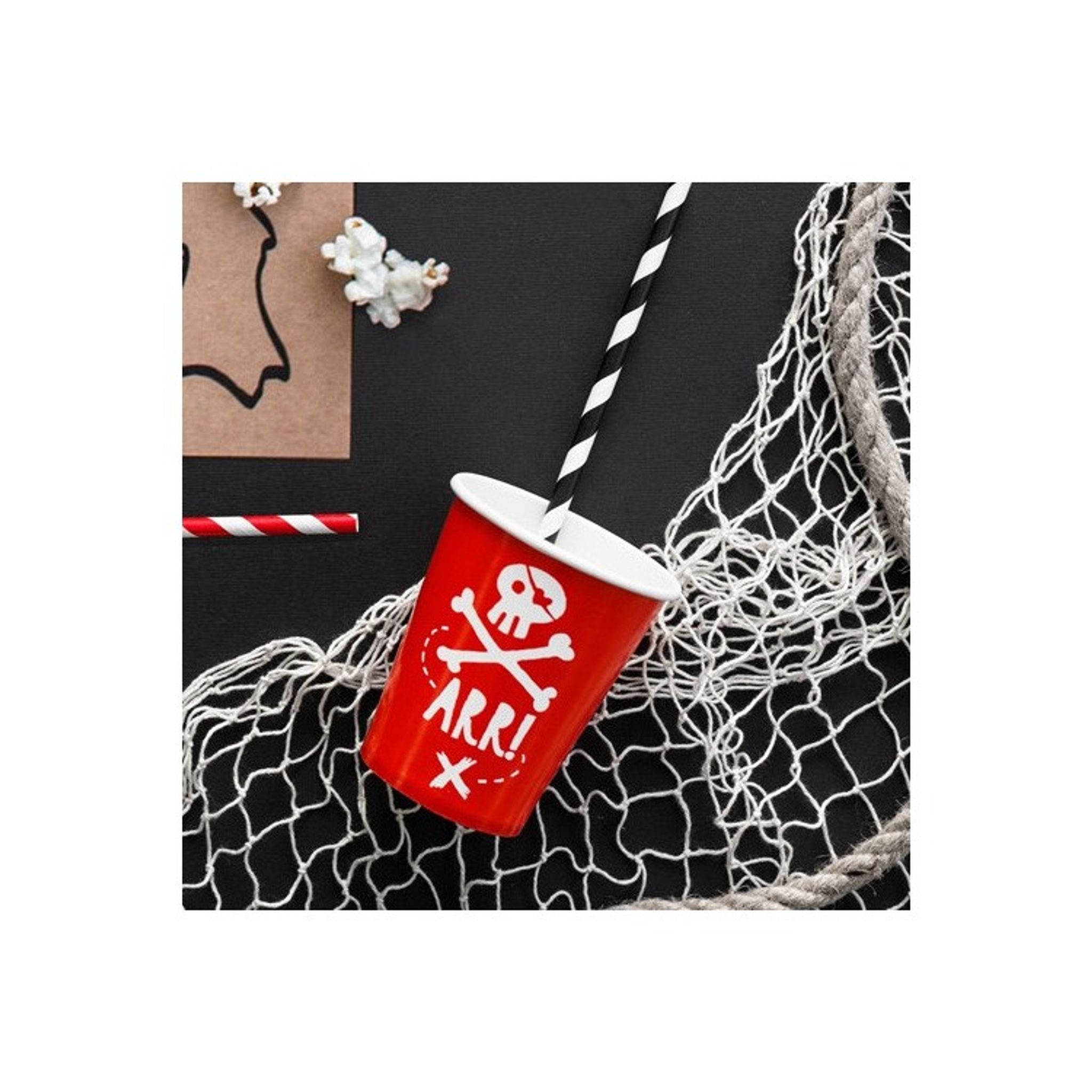Nu gör du enkelt en snygg dukning på piratkalaset med hjälp av dessa muggar. Pappersmuggar i en härlig röd färg med vitt piratmotiv. Mixa och matcha med övriga produkter i samma temat för att skapa en riktigt piratkalas!