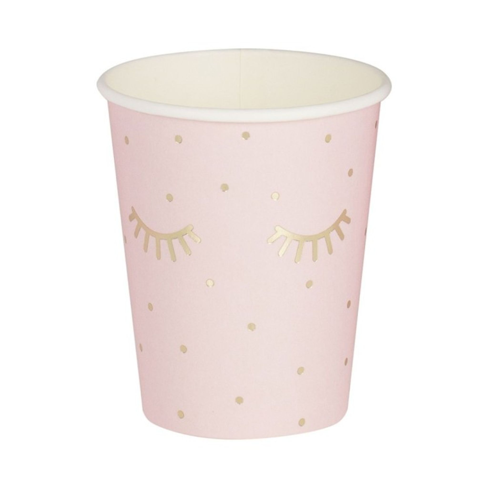 Muggarna blir perfekta att servera favoritdrycken ur på kalaset med tema Pyjamasparty. Motivet på pappersmuggarna är ett par sovande ögon och dessa är extra fina att matcha tillsammans med våra andra kalasdetaljer från samma serie.