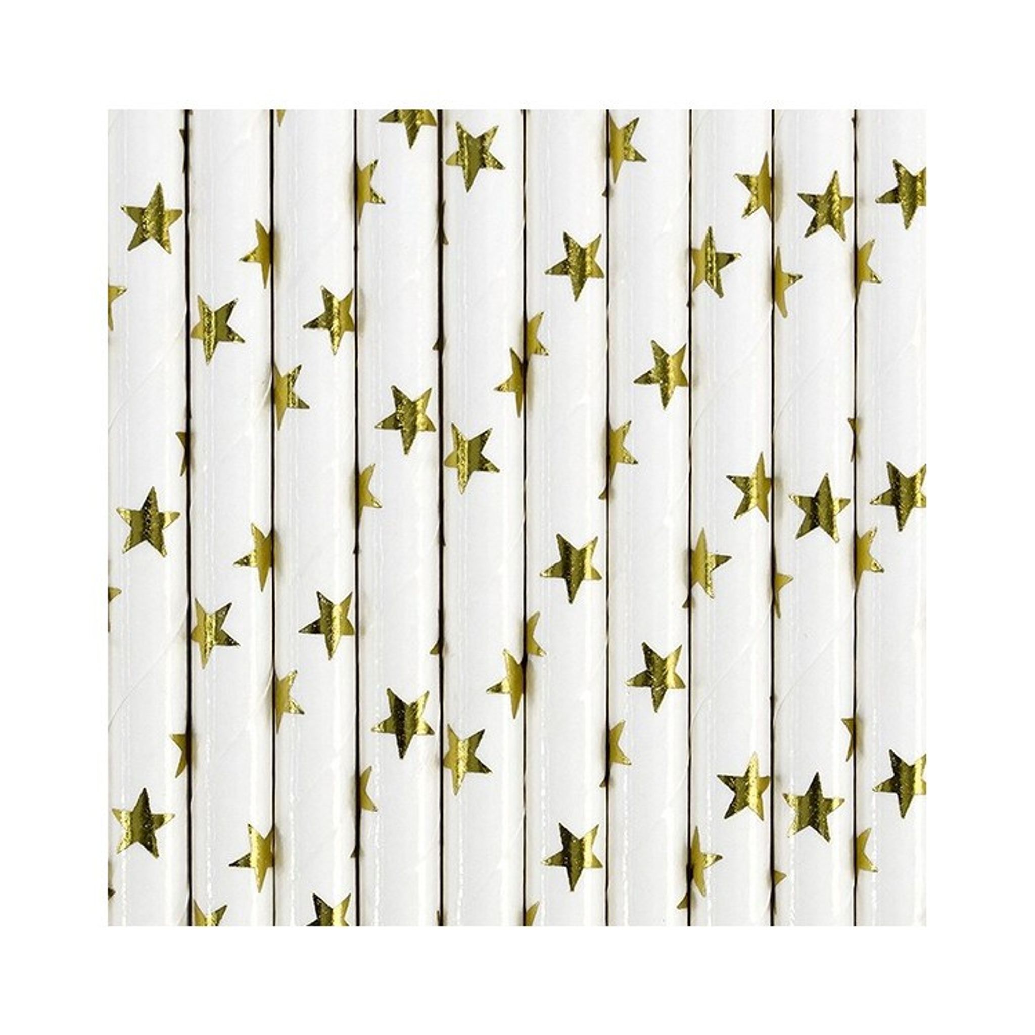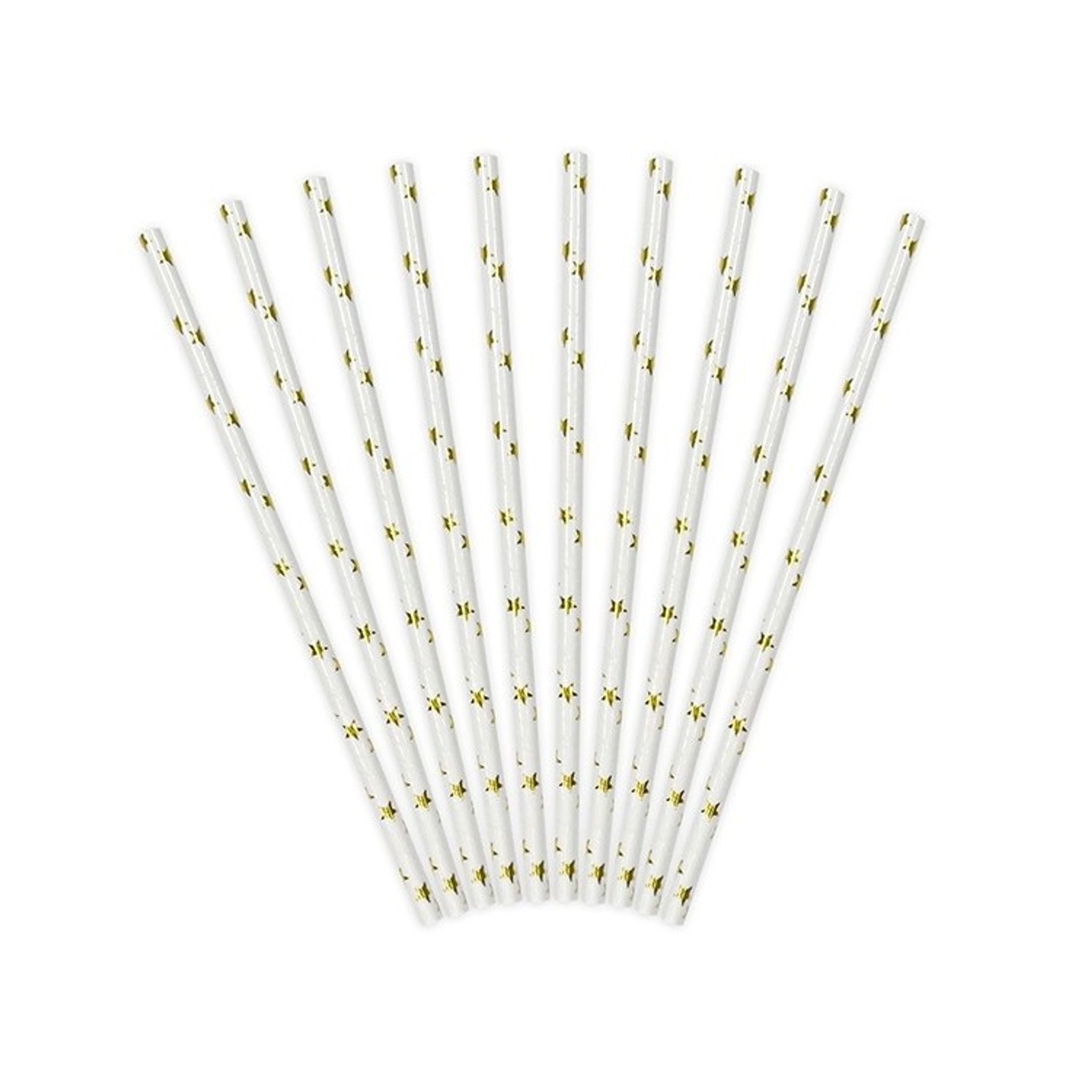 10 st super fina vita papperssugrör med guldstjärnor. Dekorera med sugrören till barnkalaset eller till vuxenfesten som skall gå i guld. Pappersugrören passar också perfekt när du vill göra dina egna cake-pops, då blir det extra fint att knyta en rosett om sugrören i matchande färg.