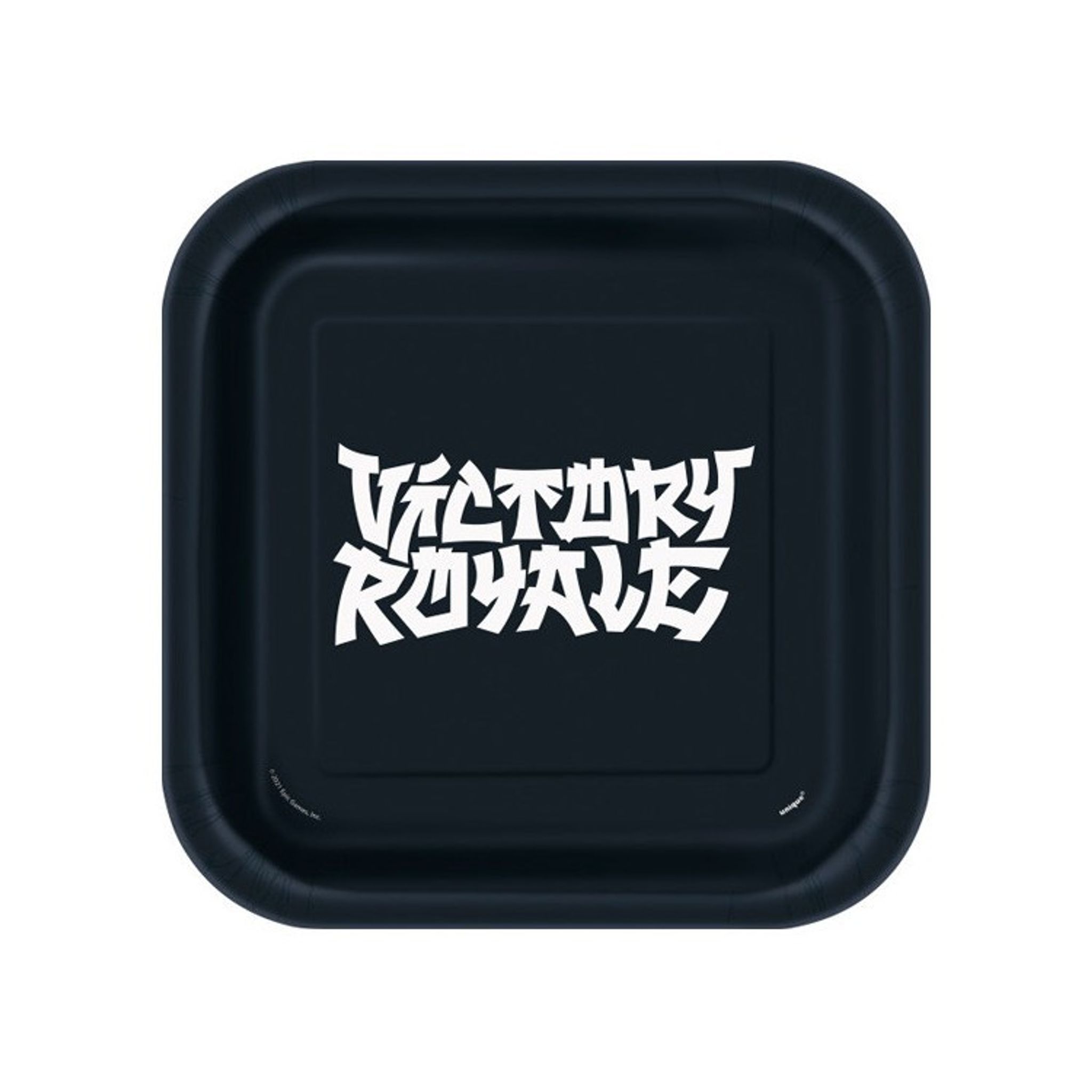 Gillar du att spela Fortnite och planerar ett kalas då har vi något för dig. Dessa supercoola tallrikar i svart med texten Victory Royale kommer garanterat imponera på dina gamingvänner. Bjud in till ett riktigt Fortnite gamingkalas och duka upp med hela temat fortnite och ha en oförglömlig kväll i riktig Fortniteanda. Den fyrkantiga formen, svarta färgen och den rena vita texten gör dukningen till Fortnitekalaset både coolt och stilrent på samma gång.