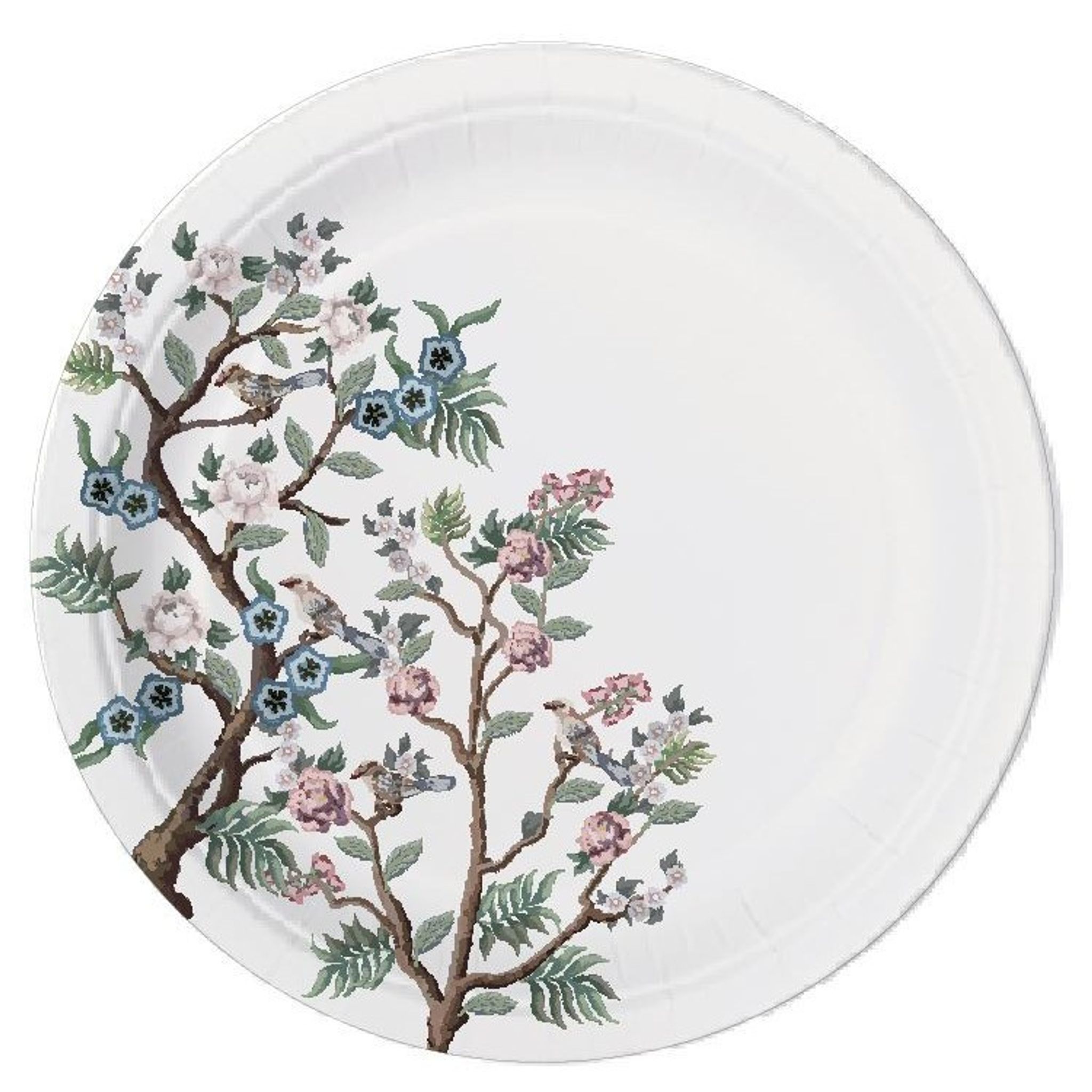 12 st söta vita papperstallrikar med dekoration av härlig kvistblommor i vackra färger. Storlek: 25 cm Antal: 12 st