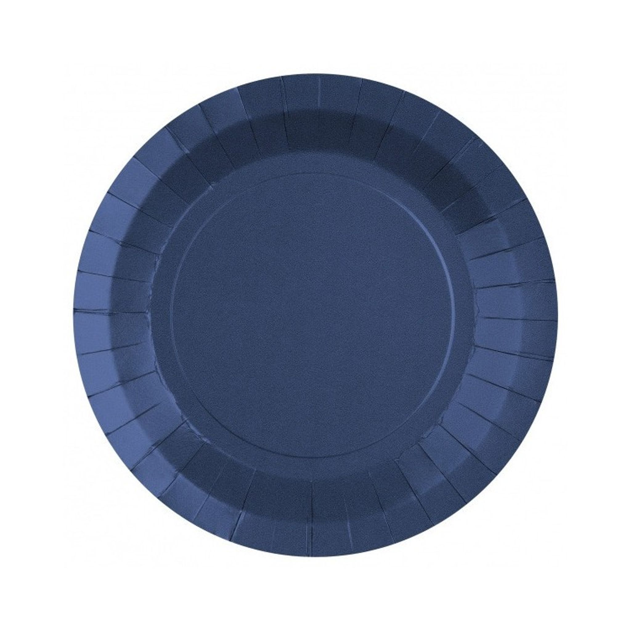 Papperstallrikar Marinblå. Urläcker marinblå färg som pryder bordet i form av praktiska papperstallrikar. Duka upp snyggt för din fest eller ditt kalas med papperstallrikar i en snygg design. Matcha den fina marinblåa färgen med resten av dina festliga dekorationer.