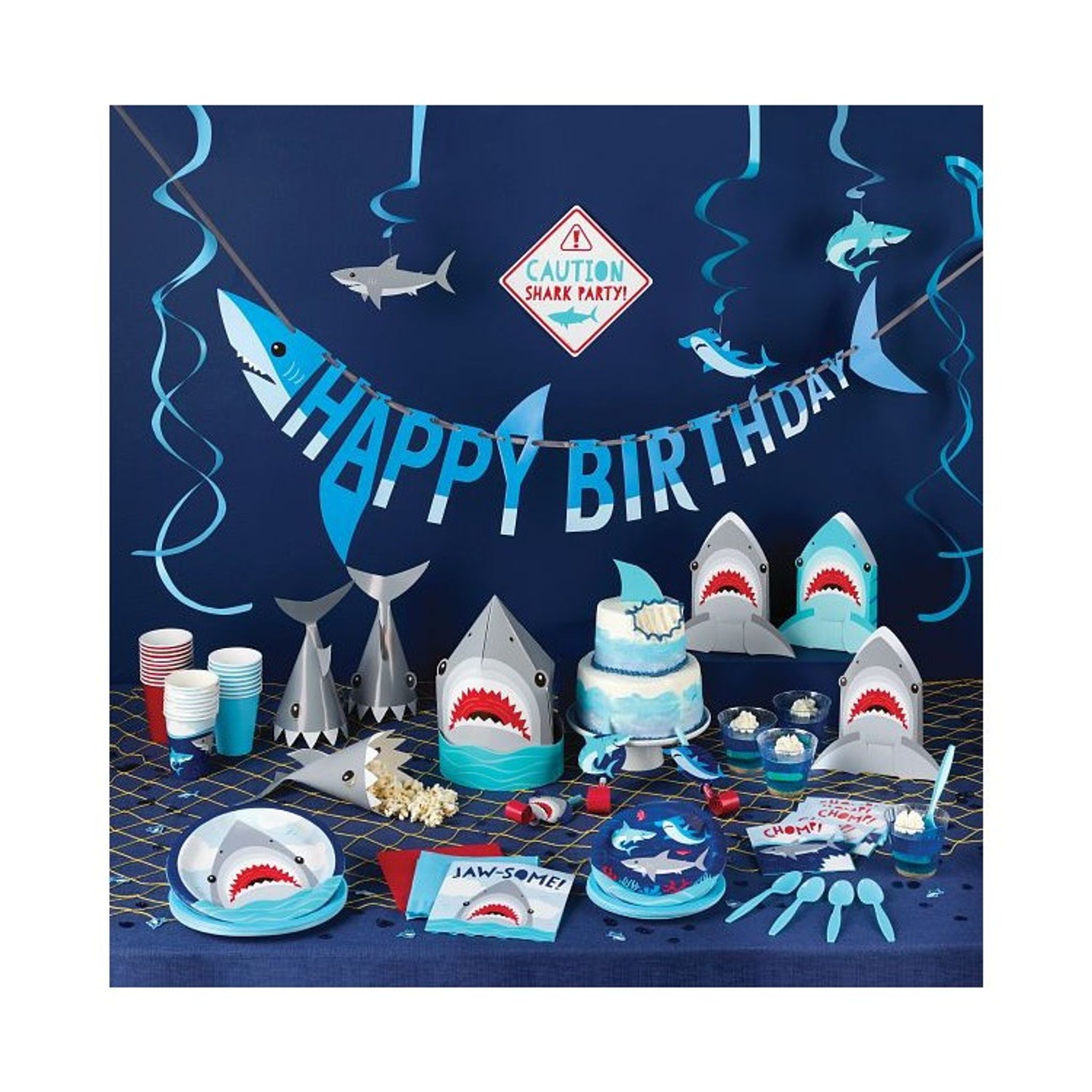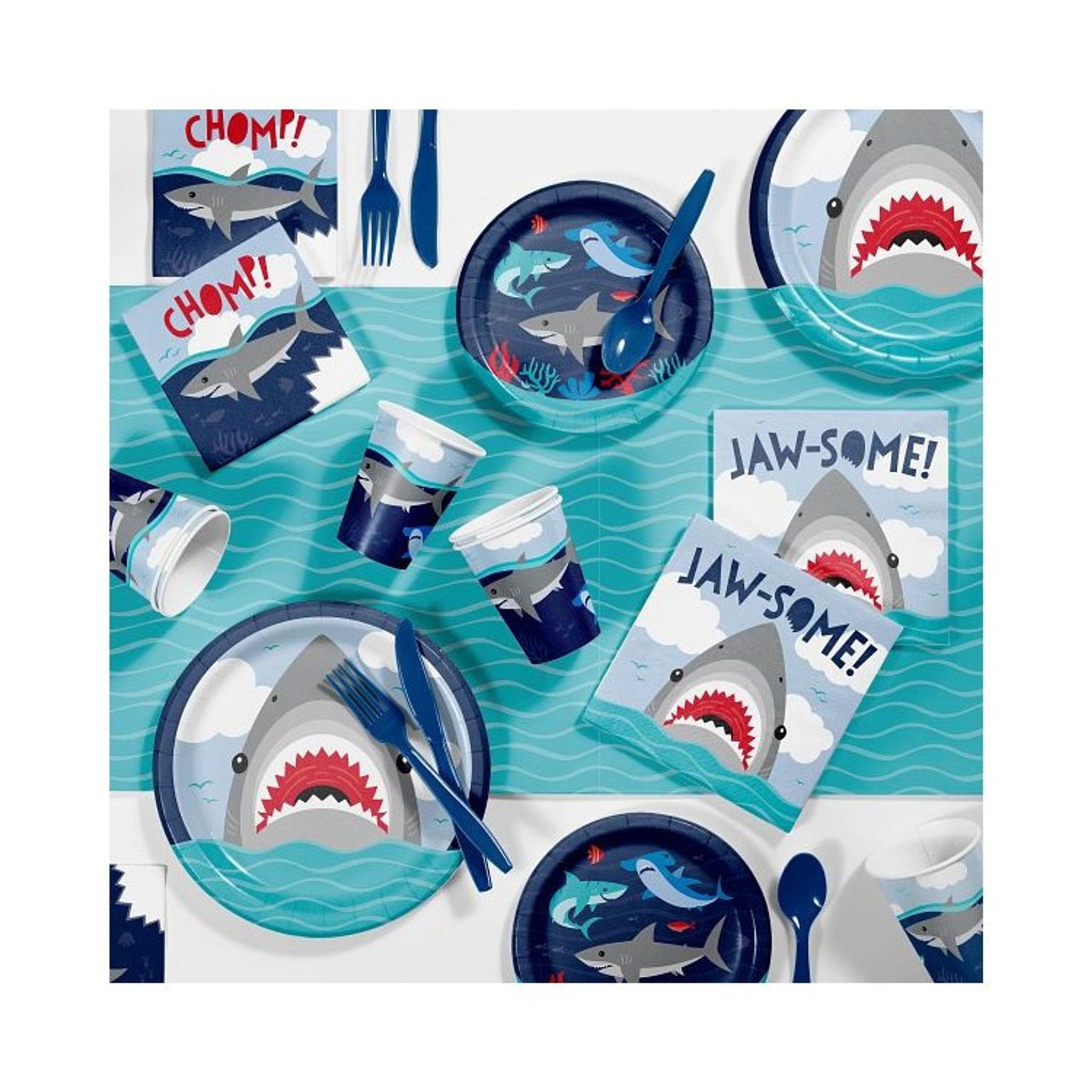 Coola papperstallrikar med hajmotiv! Perfekt att duka upp på kalaset med just detta tema och bäst av allt, du slipper disken! Förpackningen innehåller 8 st papperstallrikar. Storlek: 23 cm i diameter