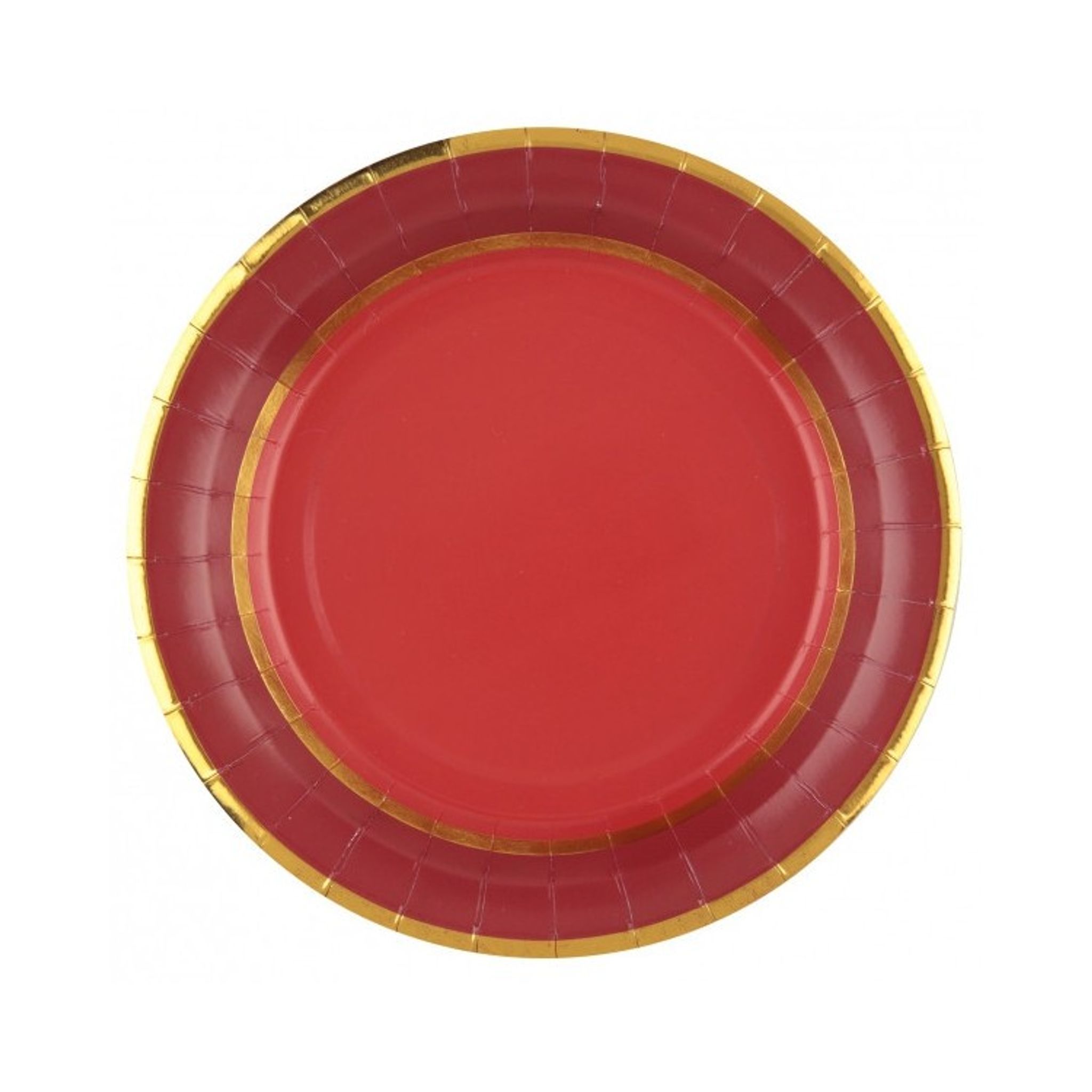 Papperstallrikar Röd med Guldkant. Duka fram för en storslagen fest eller ett mysigt litet kalas med dessa underbara papperstallrikar. Den festliga röda färgen tillsammans med en exklusiv guldkant sätter pricken över i:et på din festliga dukning.