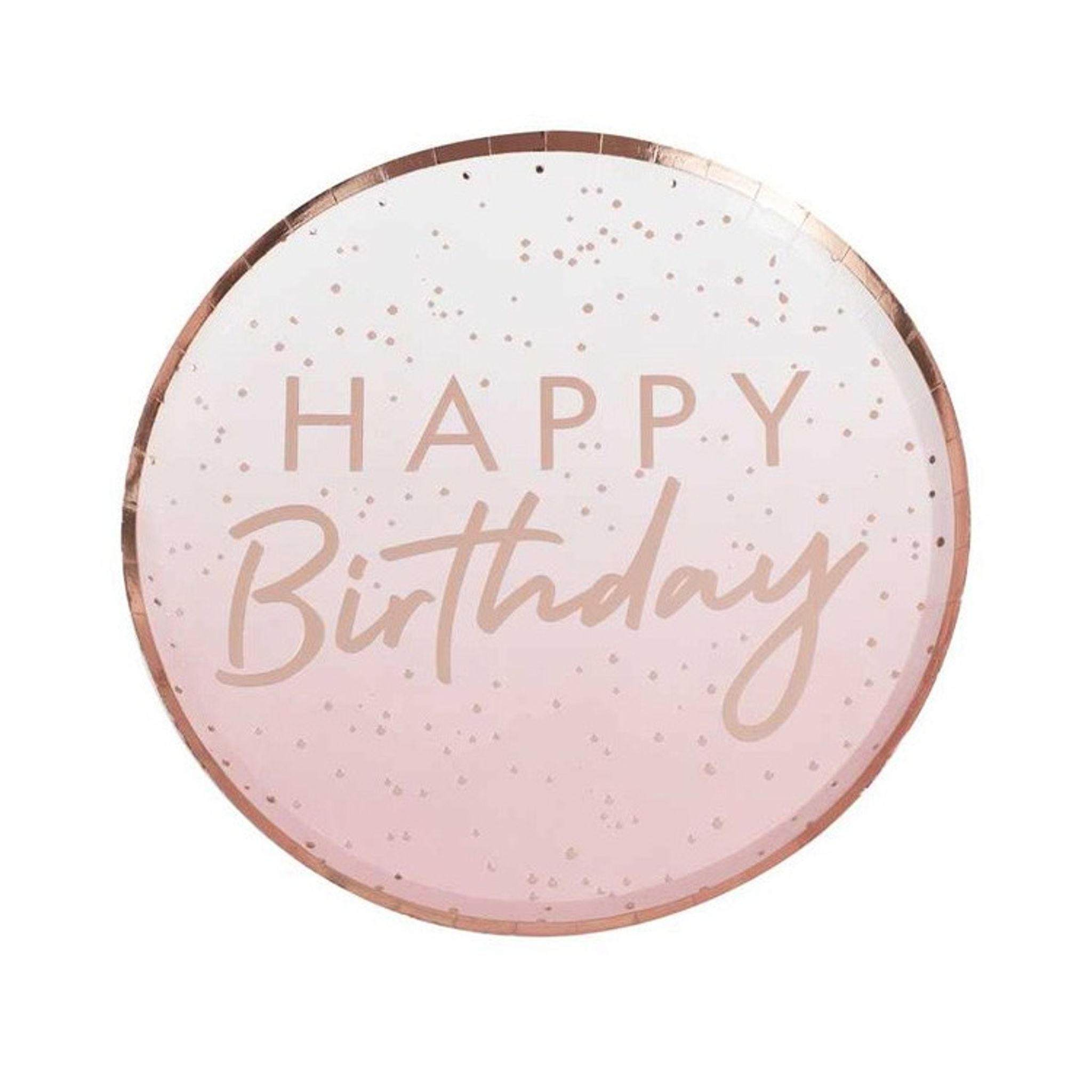 Papperstallrikar Rosa & Rosé - Happy Birthday