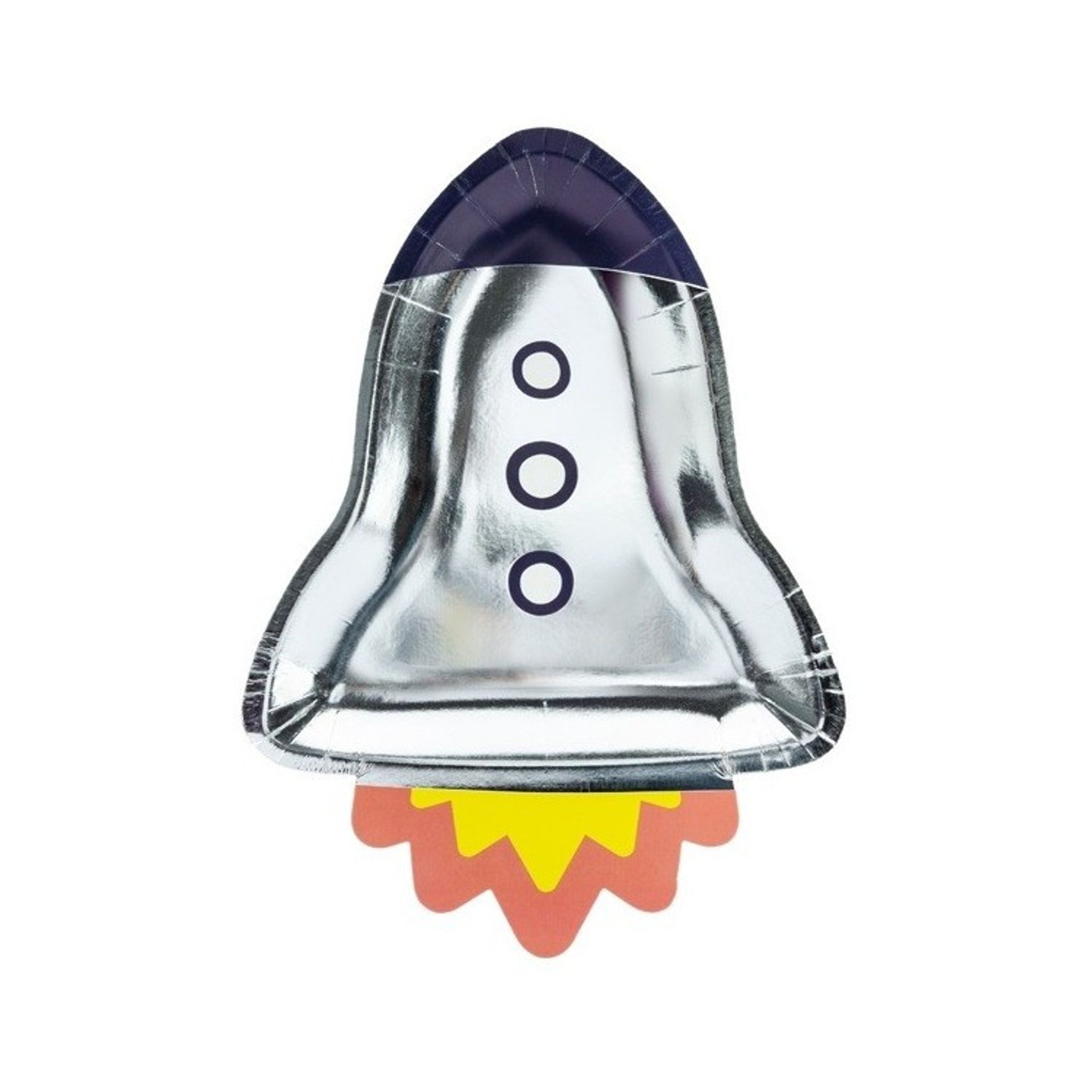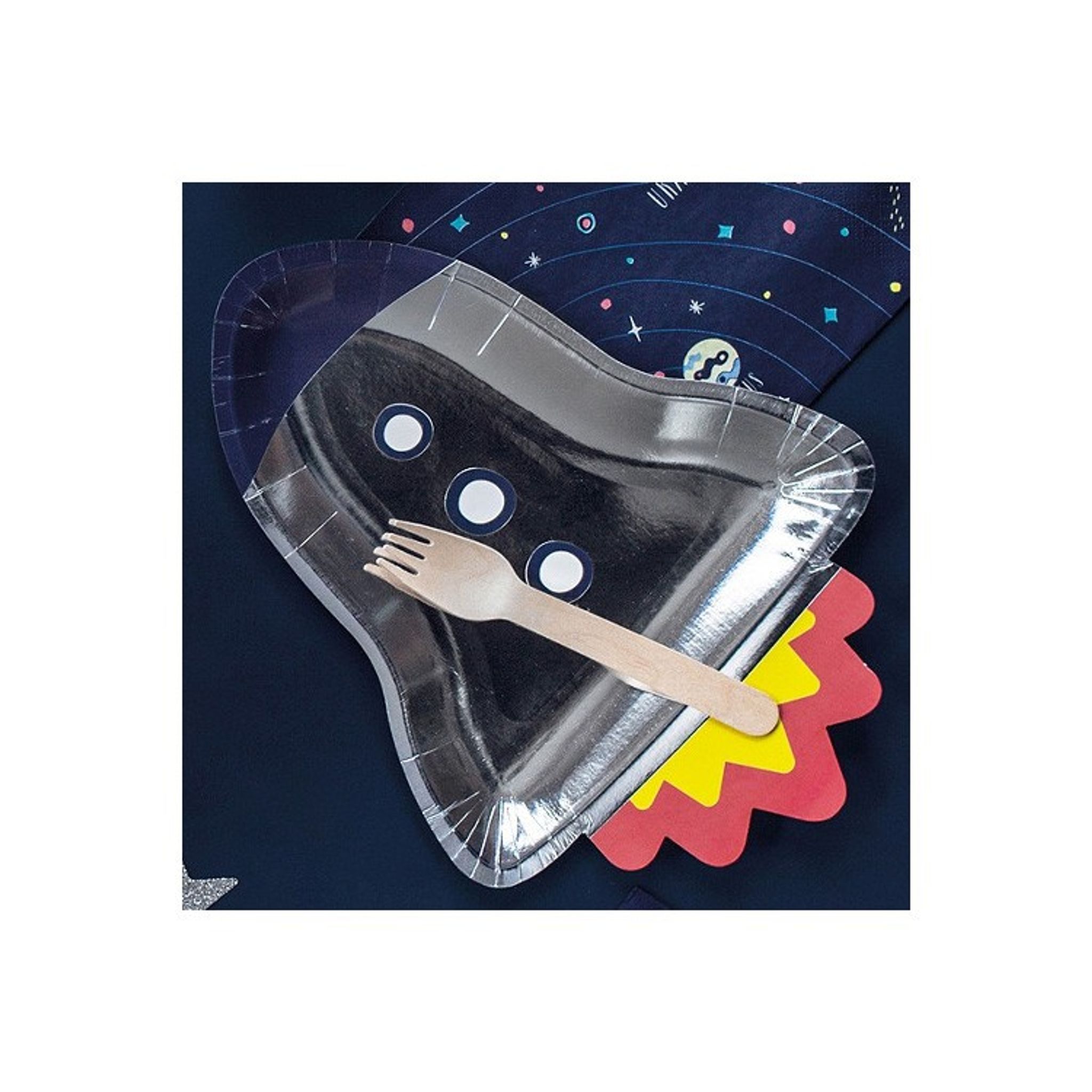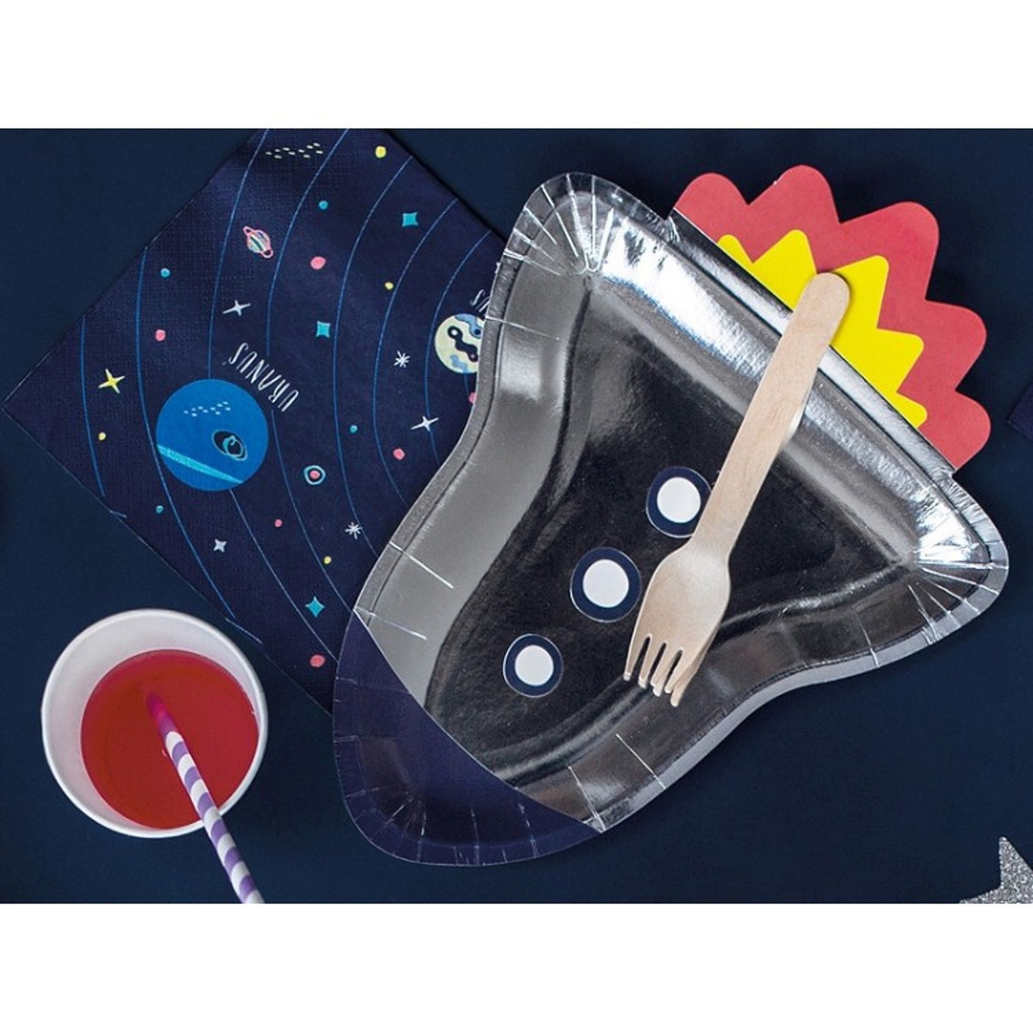 Planerar du att anordna ett läckert rymdkalas? Med hjälp av dessa papperstallrikar i form av en rymdraket skapar du lätt en rymdkänsla på dukningen. Mix och matcha med övriga produkter i rymdtemat för att skapa en helhetskänsla.