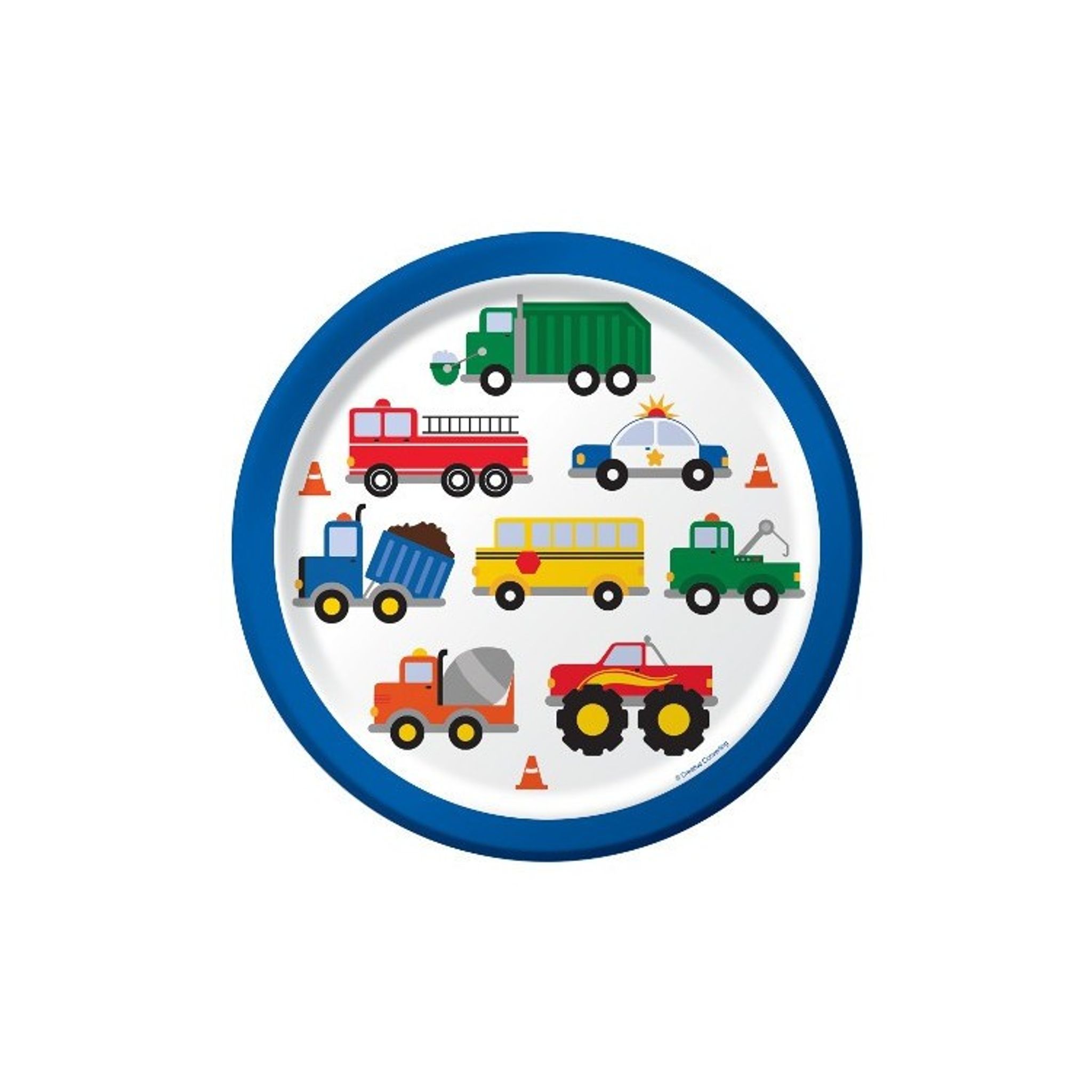 Papperstallrikar med färgglada bilar och blå kant. Perfekt att duka upp med på bilkalaset!