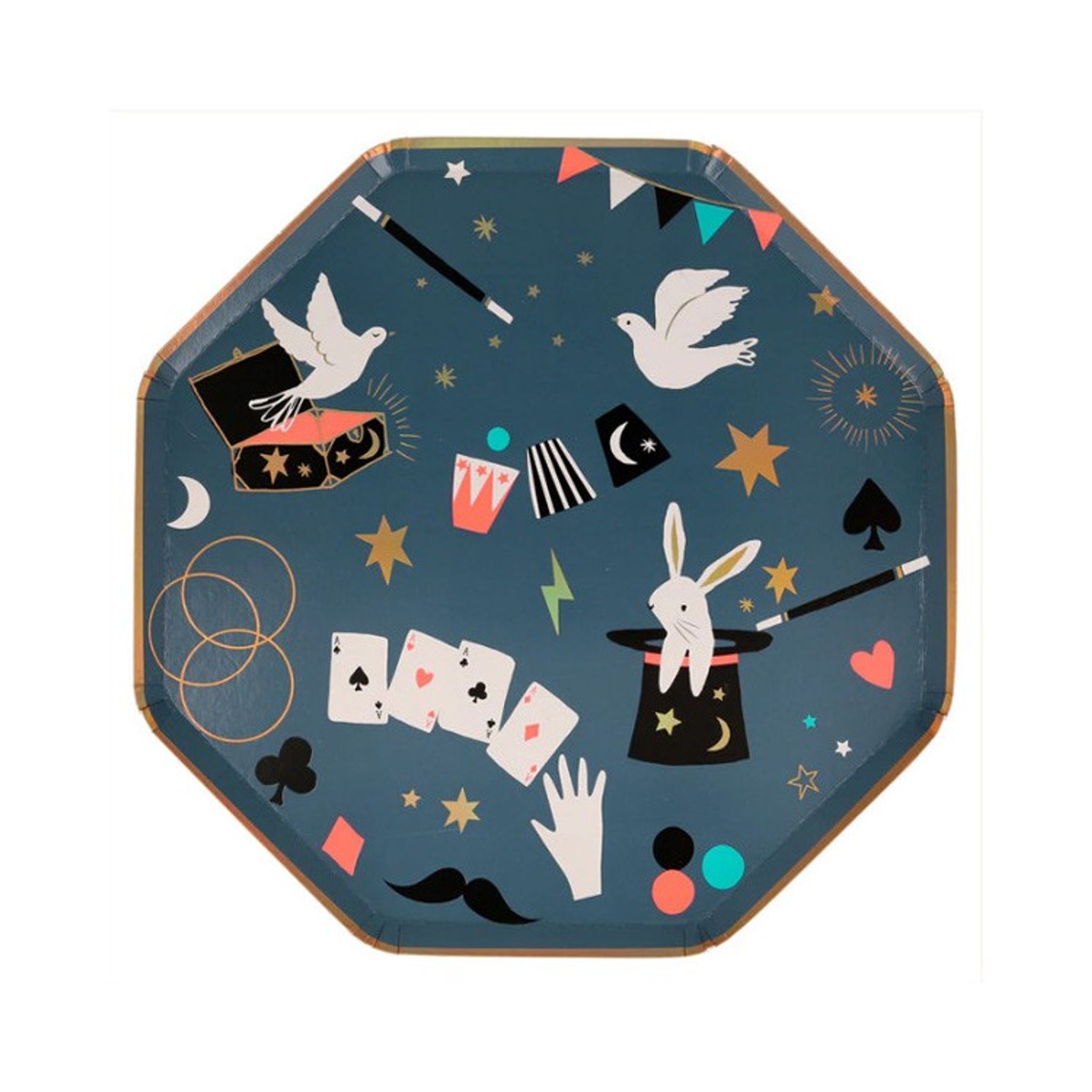 Duka upp till ett magiskt trollerikalas med hjälp av dessa underbara tallrikar. Papperstallrikarna är blåa i grunden och har sedan motiv av alla möjliga saker som just förknippas med trolleri.