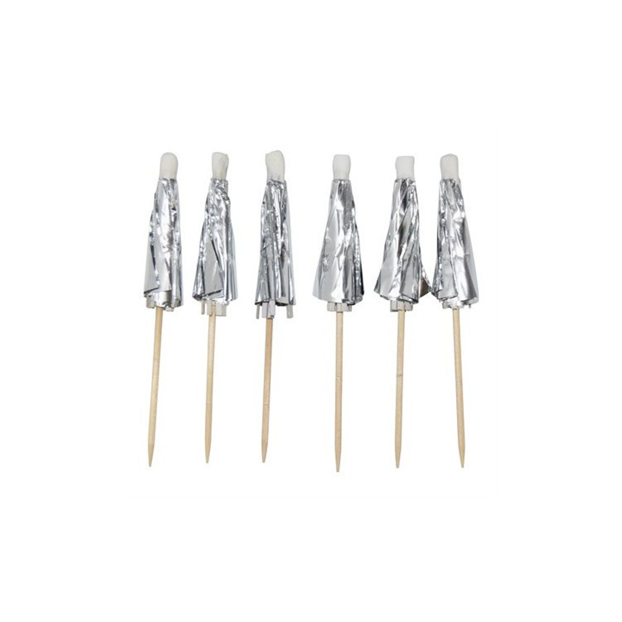 10 st partypicks i form av parasoller. Dessa är i färgen silver och passar utmärkt på alla typer av festligheter. Höjd: 10cm, Bredd: 3,5 cm