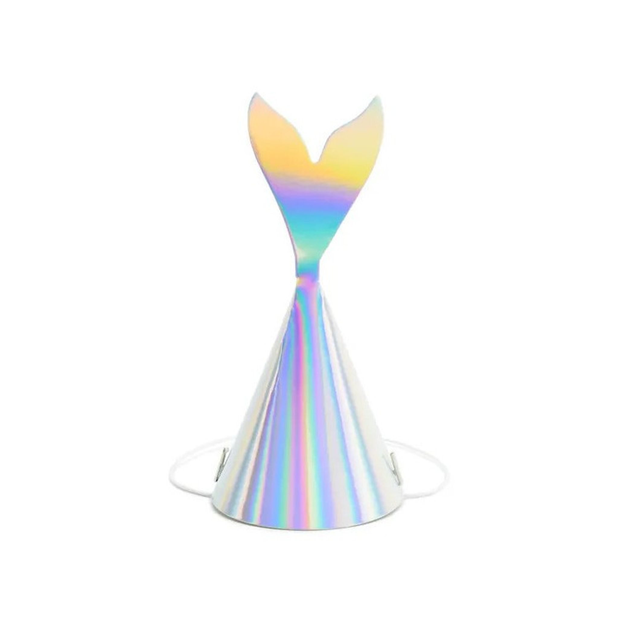 Partyhattar till Mermaid kalaset. Silver skrimrande partyhattar i form av mermaid tails. Ställ ut en varsin på gästernas plats eller dela ut till barnets kompisar när de anländer till kalaset. Med de här vackra partyhattarna blir barnkalaset extra festligt! 6-pack Höjd: 18 cm Kommer platta, du sätter själv enkelt ihop dessa.
