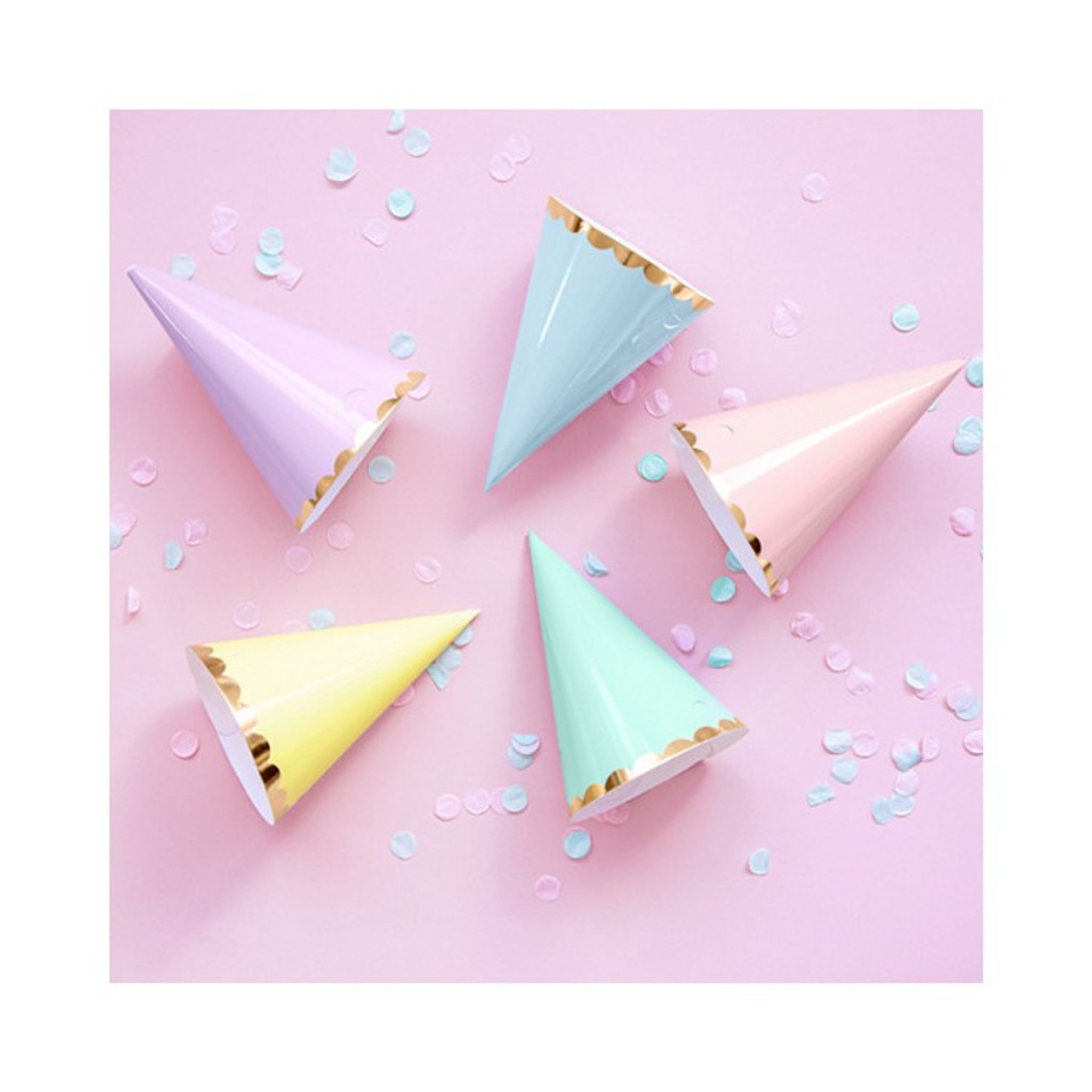 Förpackningen innehåller 6 st partyhattar i mixade pastellfärger.