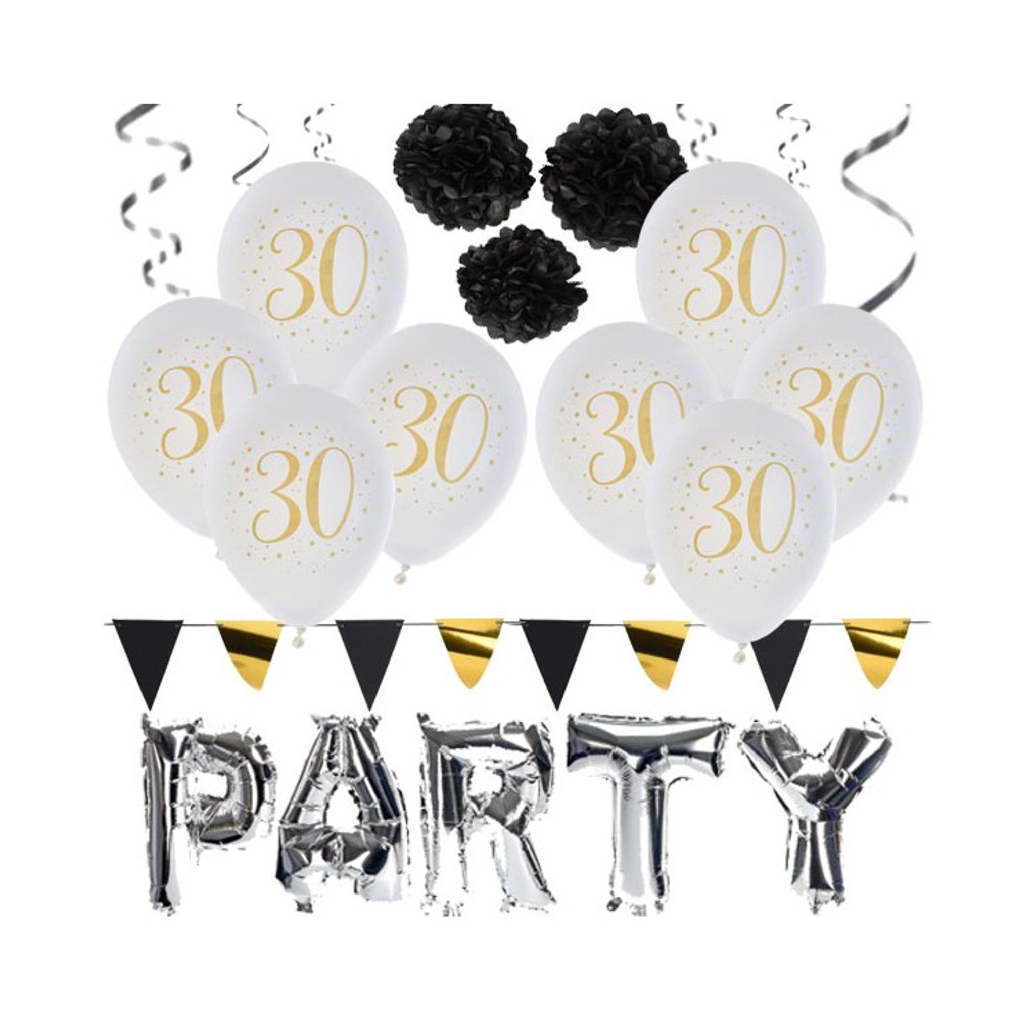 Färdigt kit med partydekortioner till 30-års festen.