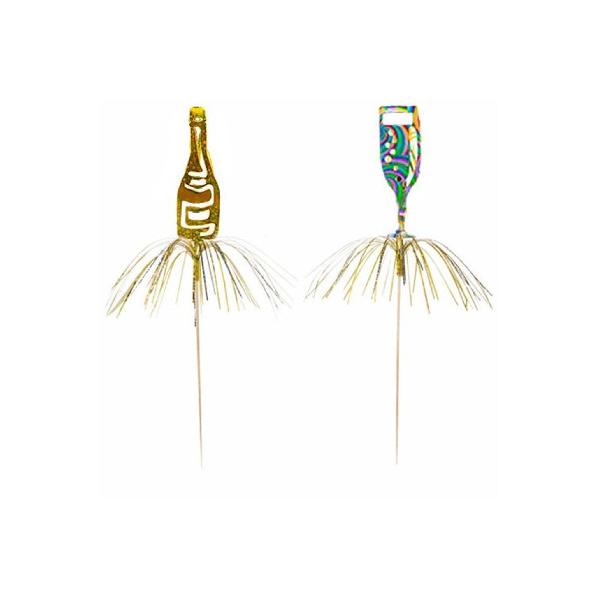 Här har du de perfekta picksen för festen. Picken har nämligen motiv av en champagneflaska samt champagneglas och fransar i guld och silver.