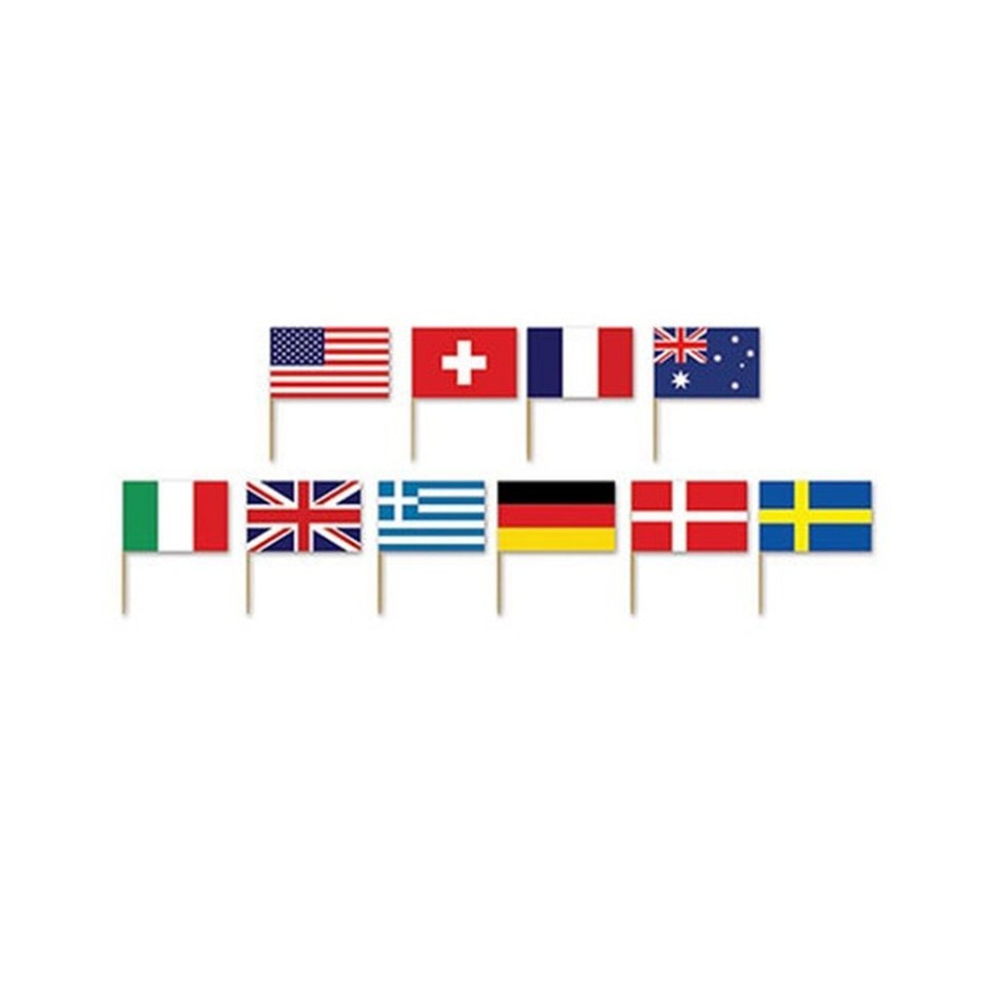 50 st partypicks med olika flaggor.