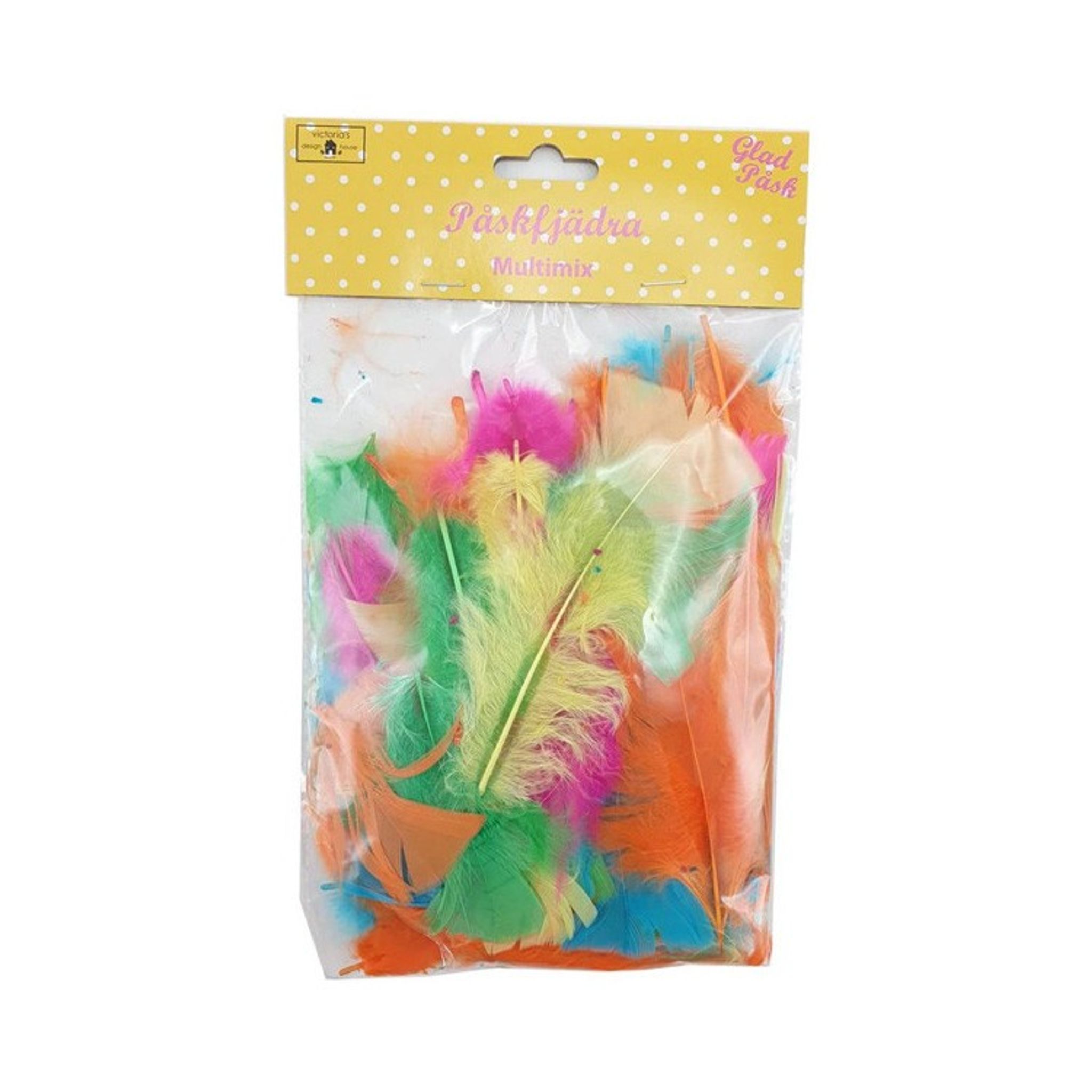 Påskdun i härligt mixade färger för påskpysslet. Storlek ca 10 cm Bilden är ett exemplar av färgmixen och kan avvika något. Ingen ståltråd finns på dunen.