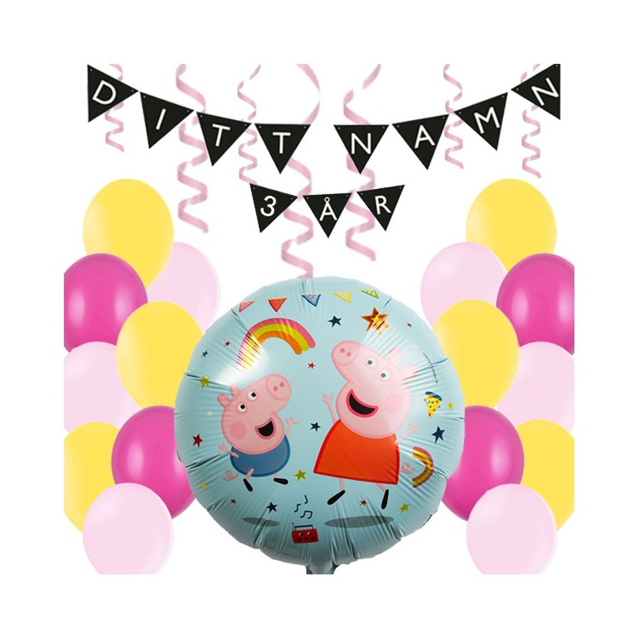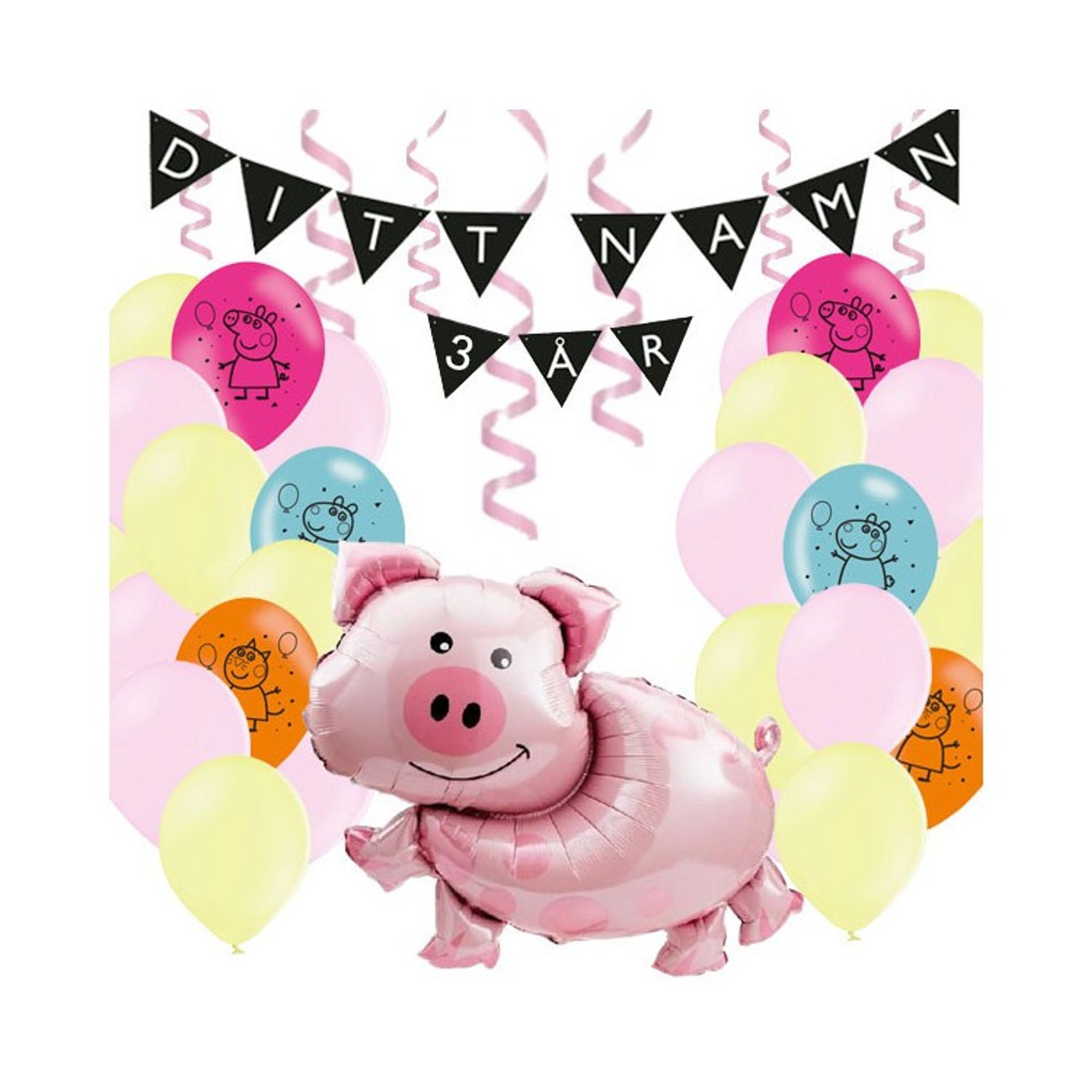 Dekorationskit som passar till kalaset med tema Greta gris.