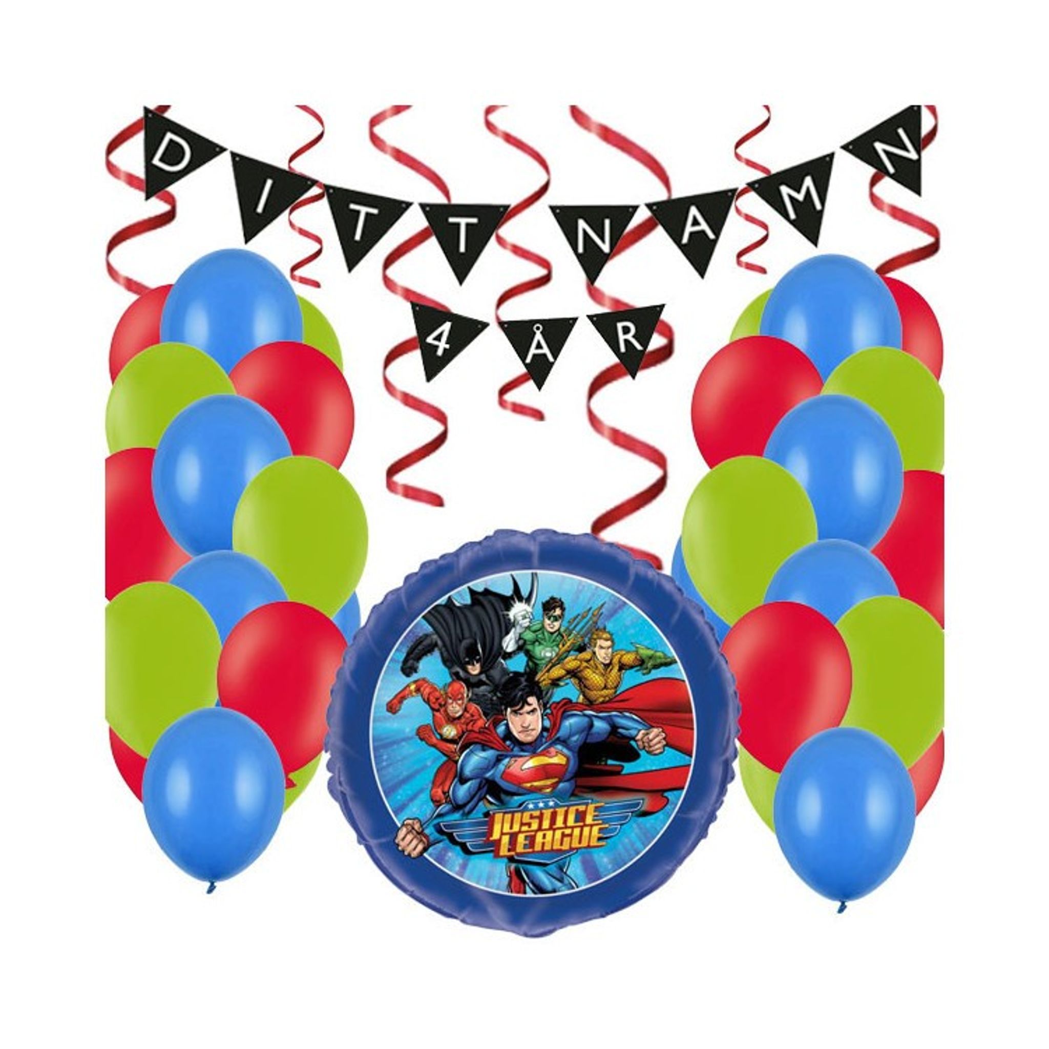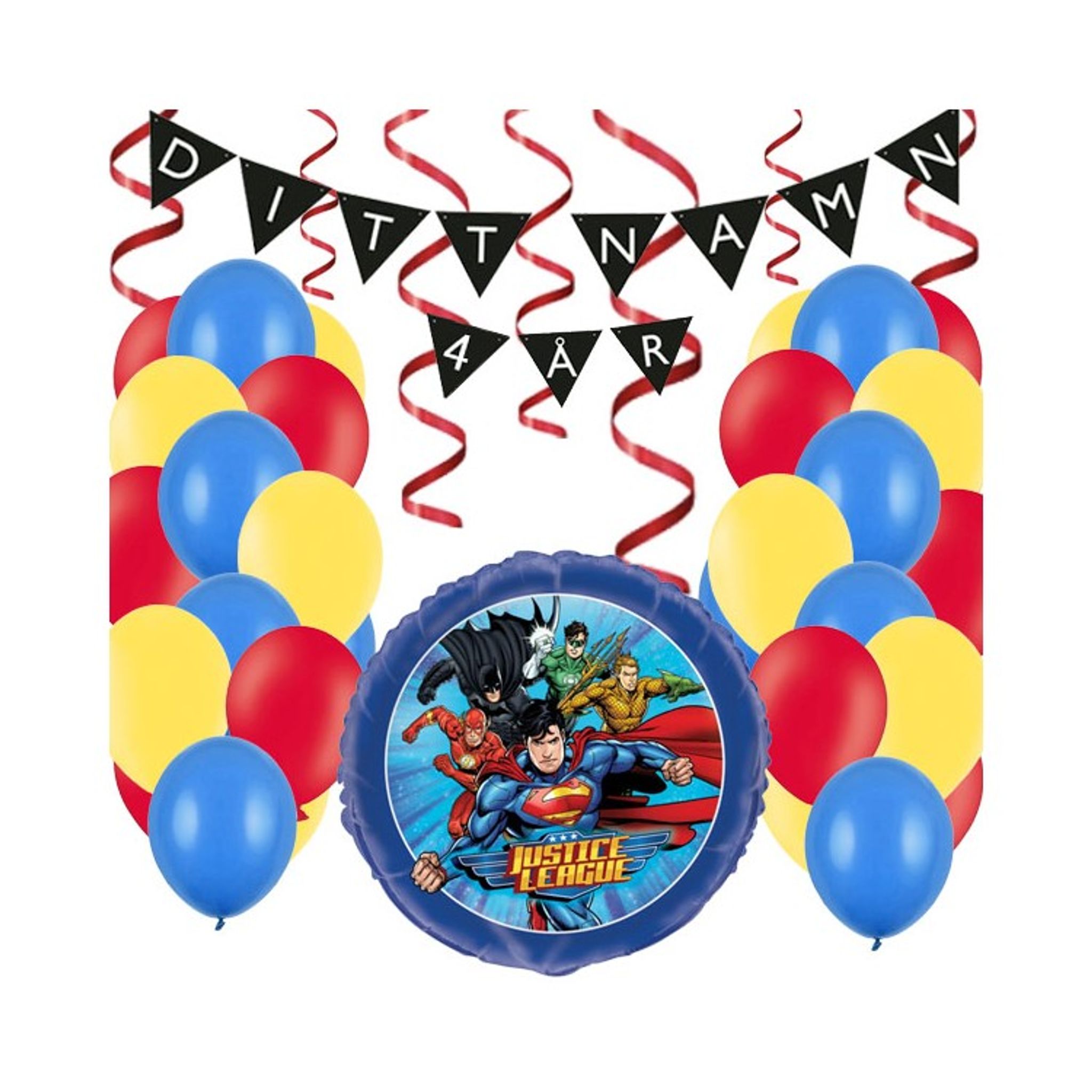 Personligt dekorationskit till Justice League kalaset.