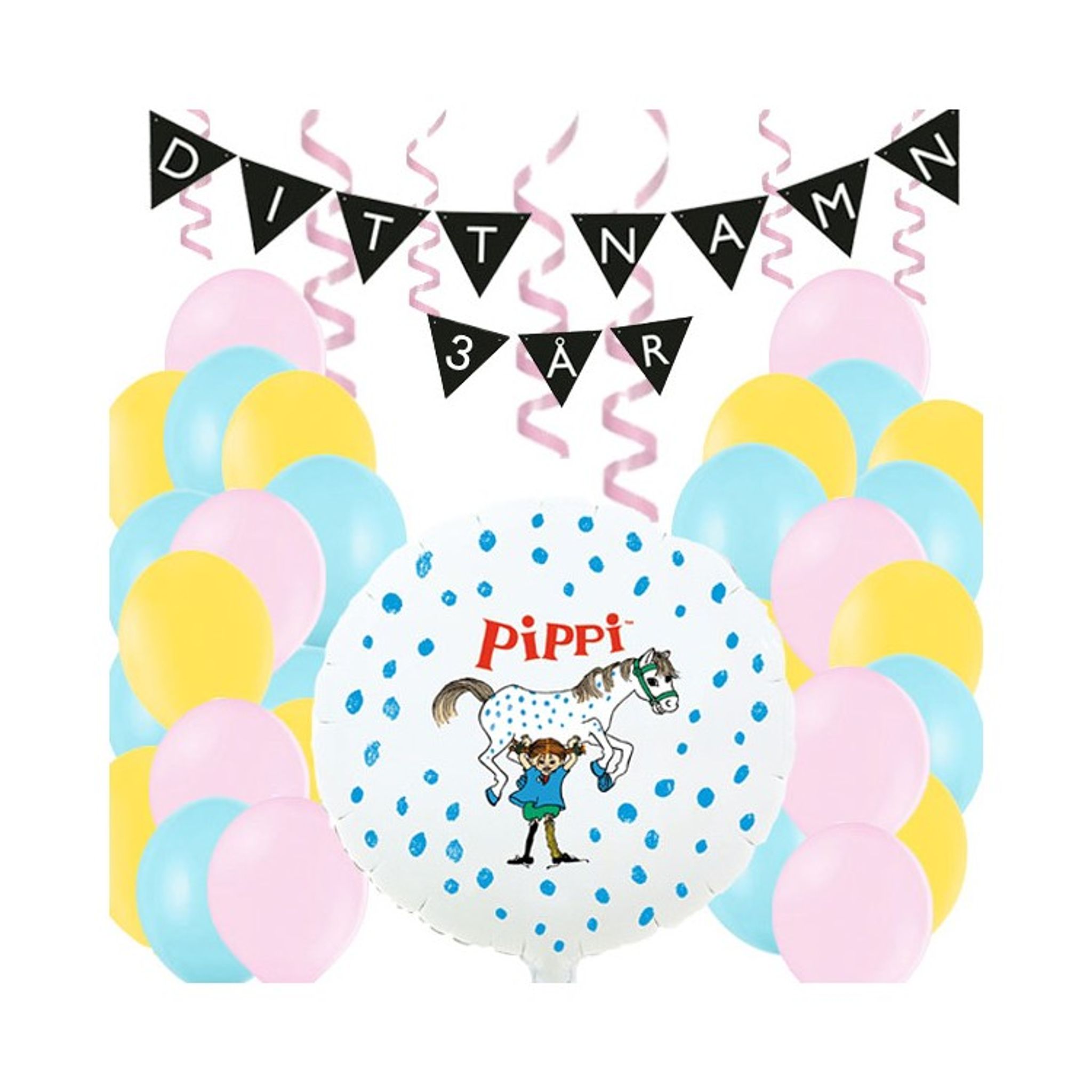 Personligt dekorationskit till Pippi Långstrump kalas.