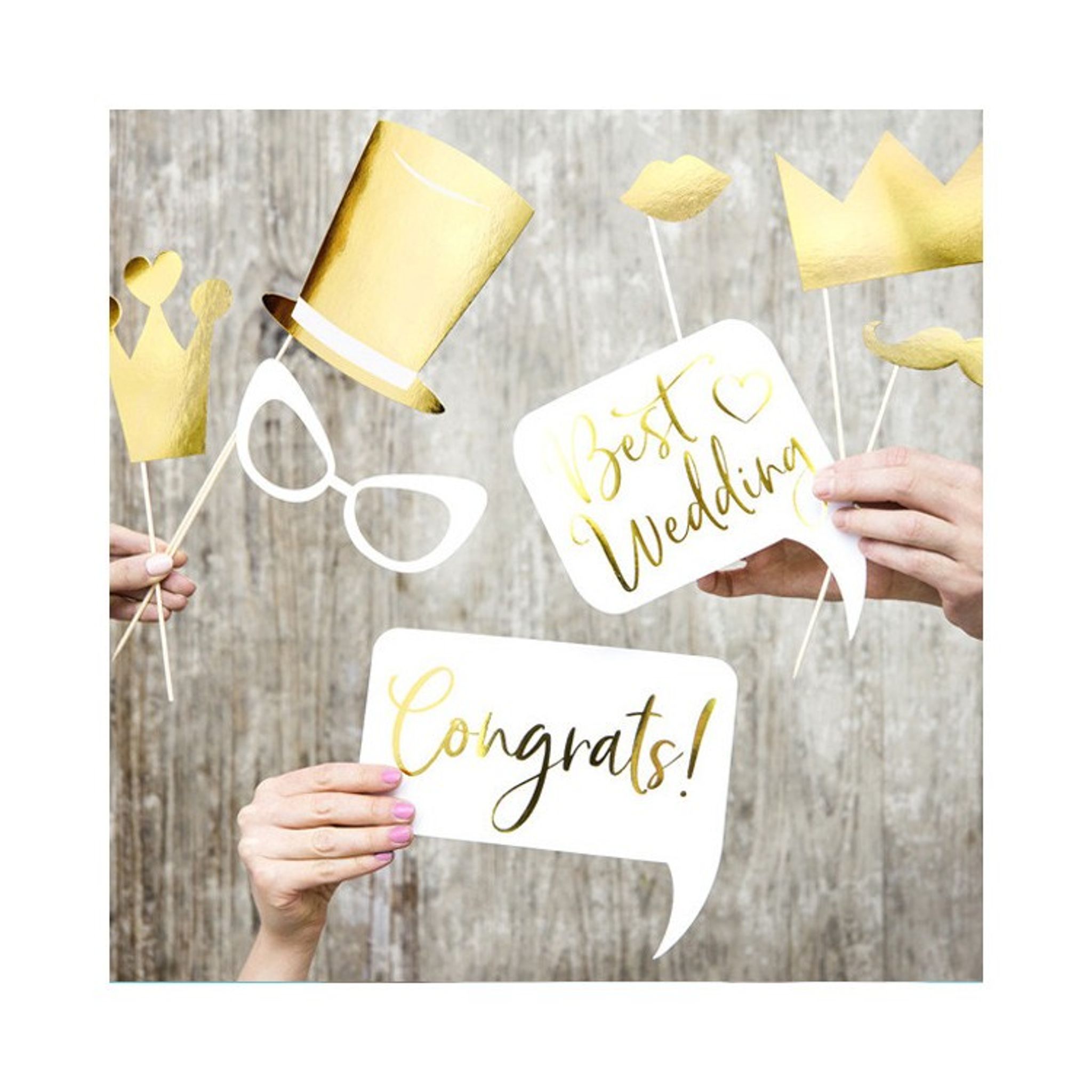 Perfekt när alla gäster ska ta roliga bilder på bröllopet. Förpackningen innehåller 10 st olika rekvisita i former som är perfekta för bröllopet. Ett mycket roligt och uppskattat inslag på bröllopet.