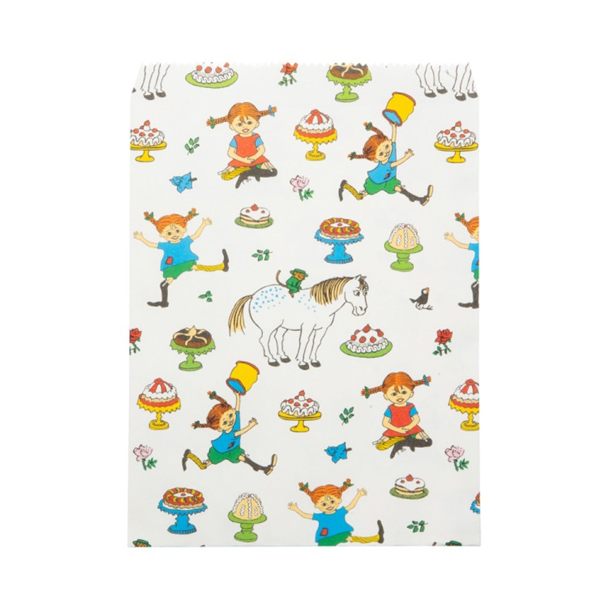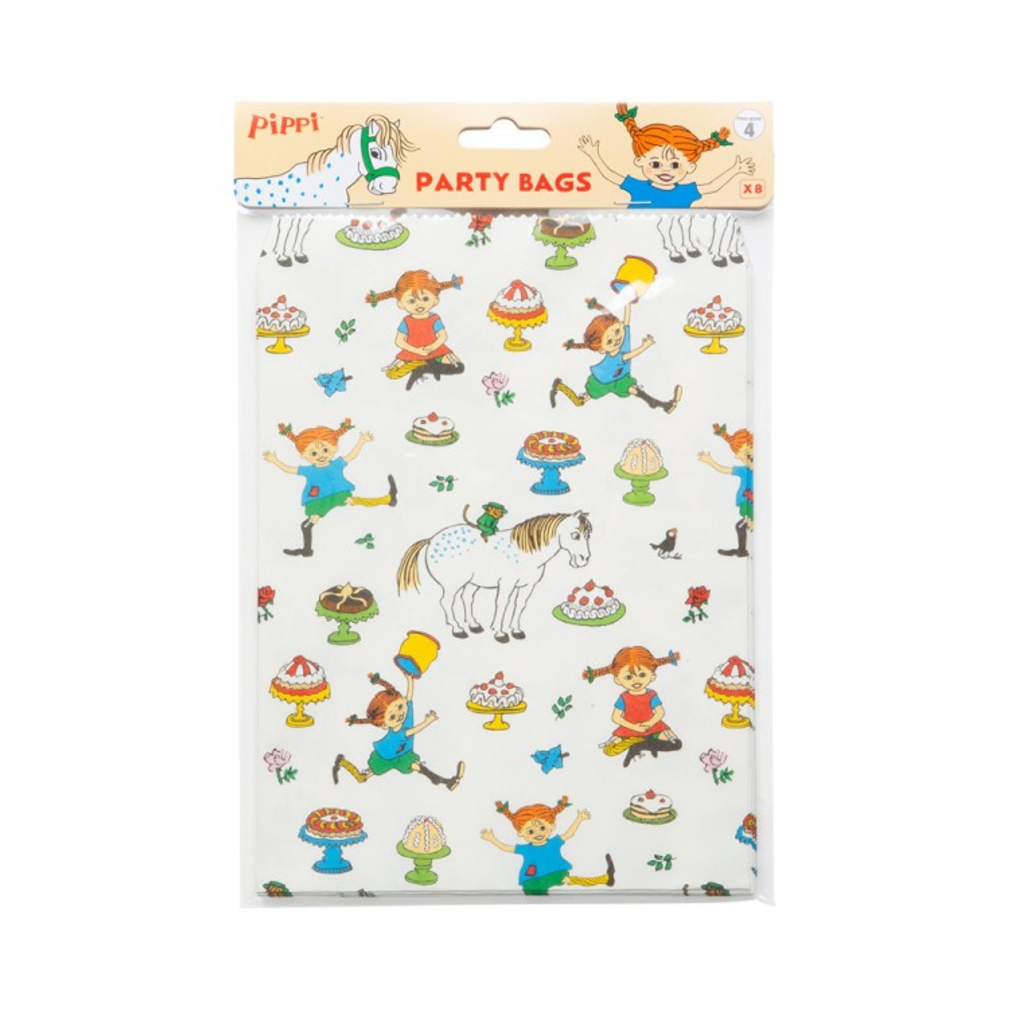 När du planerar ett roligt barnkalas så behöver du också köpa en massa gott godis till barnen som kommer på kalaset. Vad kan vara roligare än att få fiska upp kalaspåsarna från en fiskdam? Godispåsar av papper med gulligt motiv av Pippi Långstrump. En förpackning innehåller 8 st godispåsar.