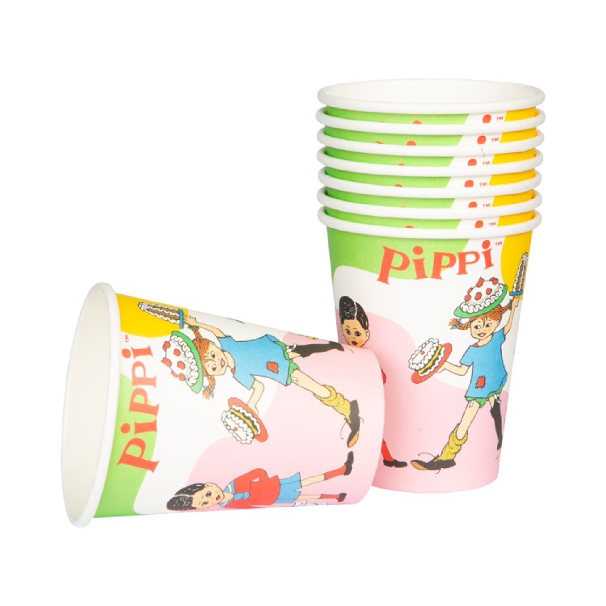 Förpackningen innehåller 8 stycken pappersmuggar som rymmer ca 250 ml.