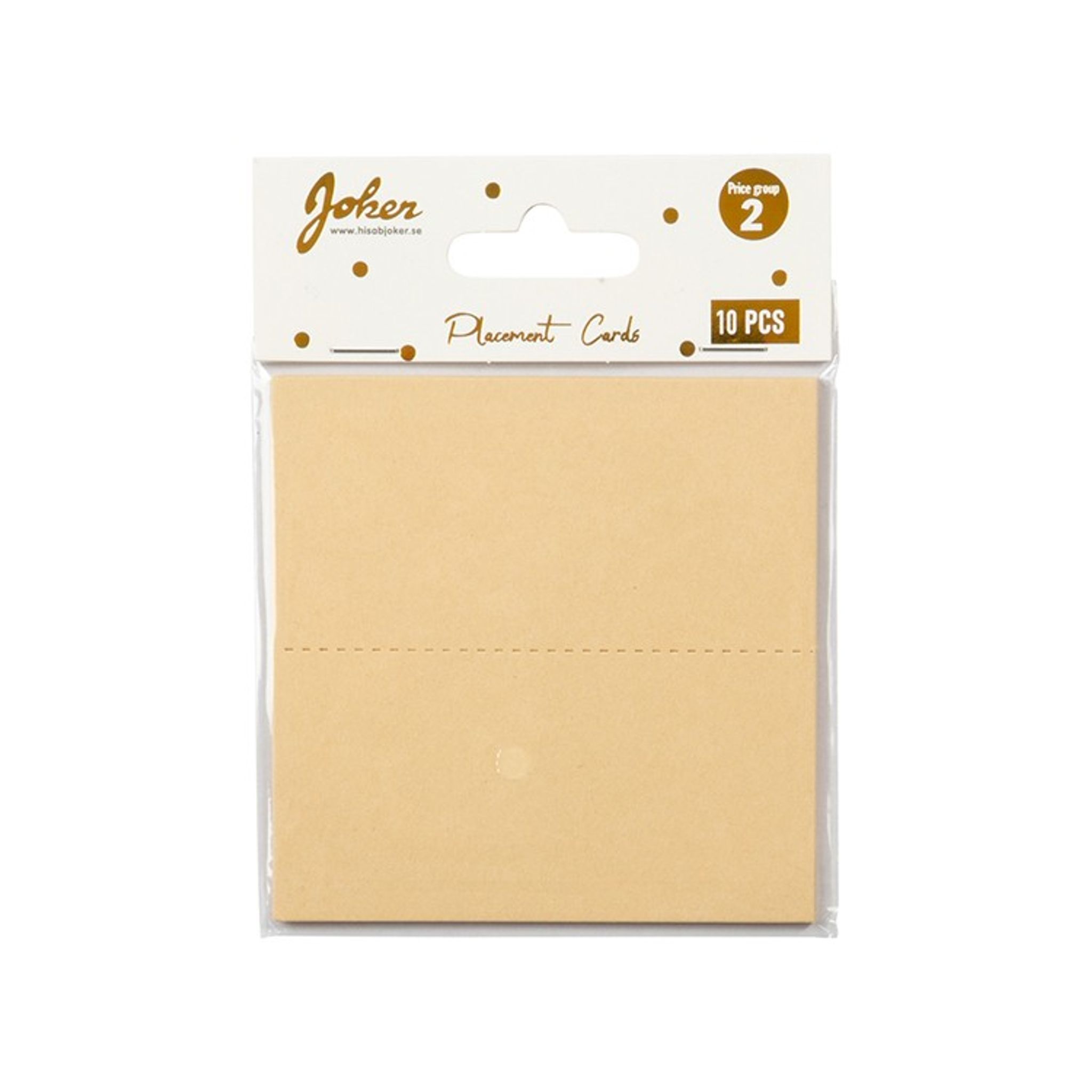 Placeringskort i en beige ton att duka med så att gästerna hittar till sin plats. Alternativt presentera maträtter eller fika vid ett buffébord. Priset avser 10 stycken placeringskort. Storlek vikta: 5 x 10 cm.