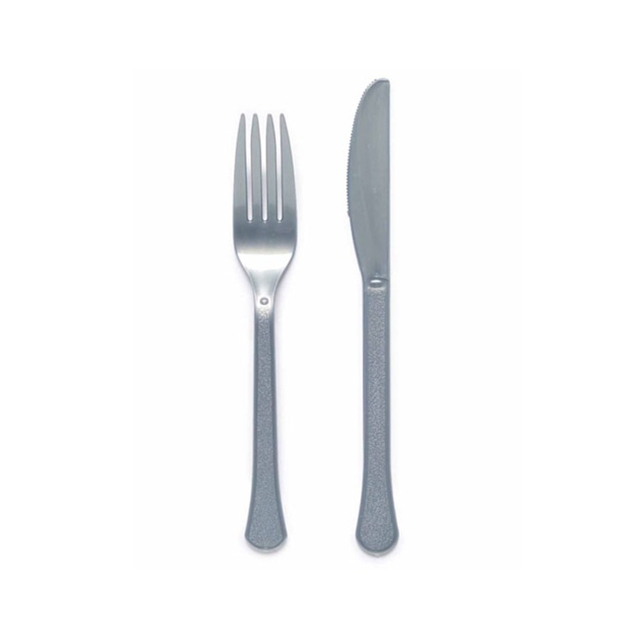 Plastbestick i silver, 12 knivar och 12 gafflar. Silverfärgen ger en festlig känsla och passar till alla tillfällen.