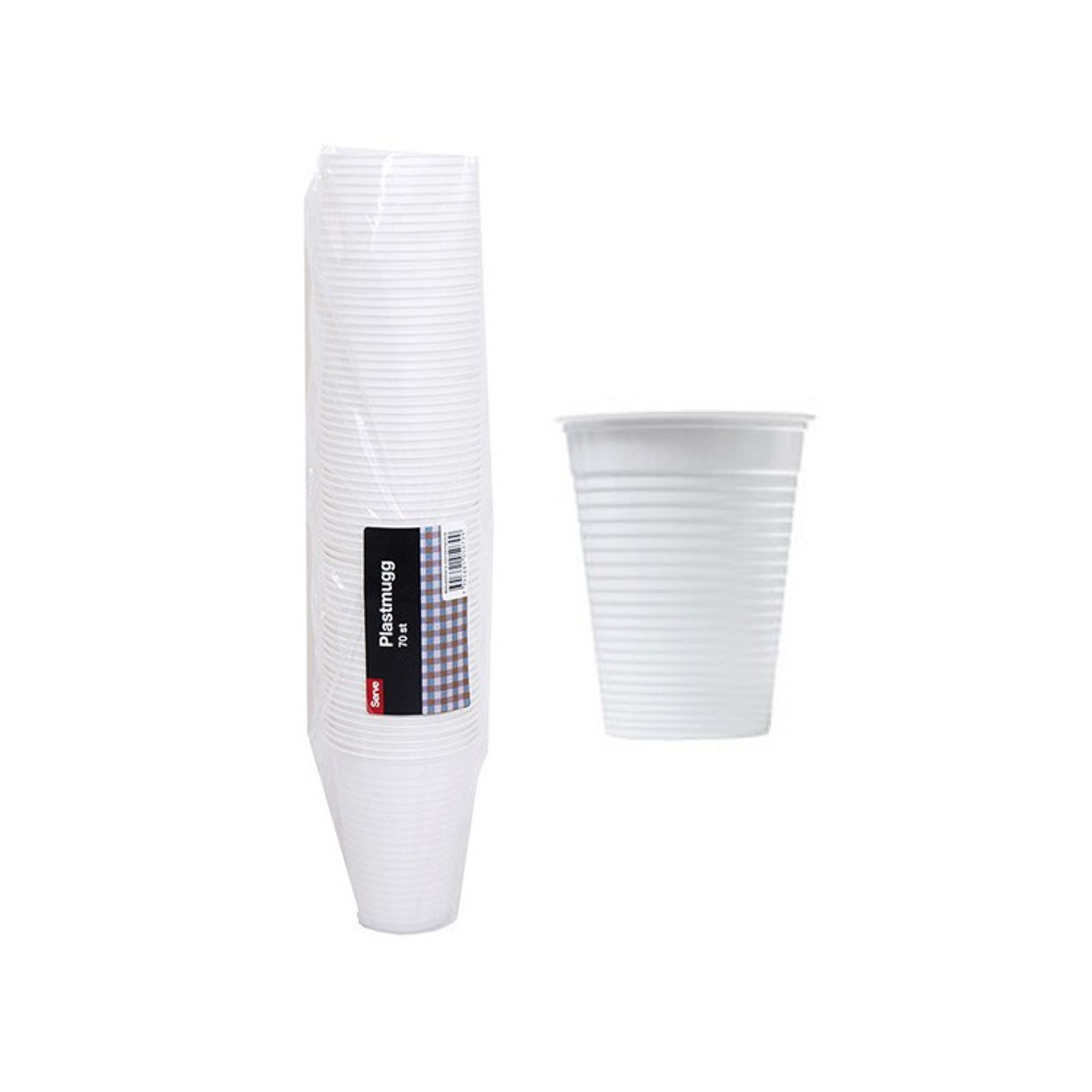 Den vita enkla designen gör att de vita plastmuggarna passar till många olika festligheter!