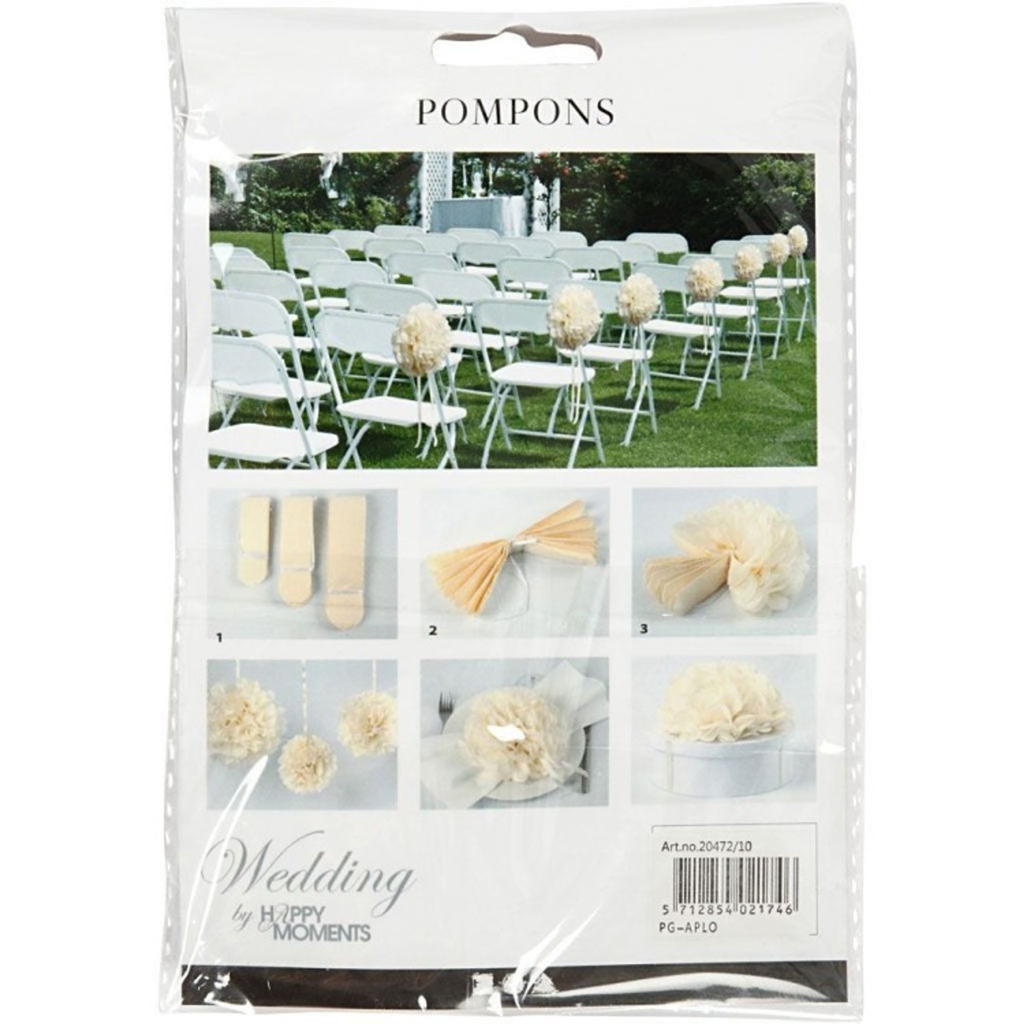 Härliga fluffiga pom poms av krämfärgat silkespapper. Viks ut till runda fluffiga bollar och knyts med tillhörande snöre. Förpackningen innehåller 3 st pappersbollar i 3 olika storlekar. Levereras omonterad.