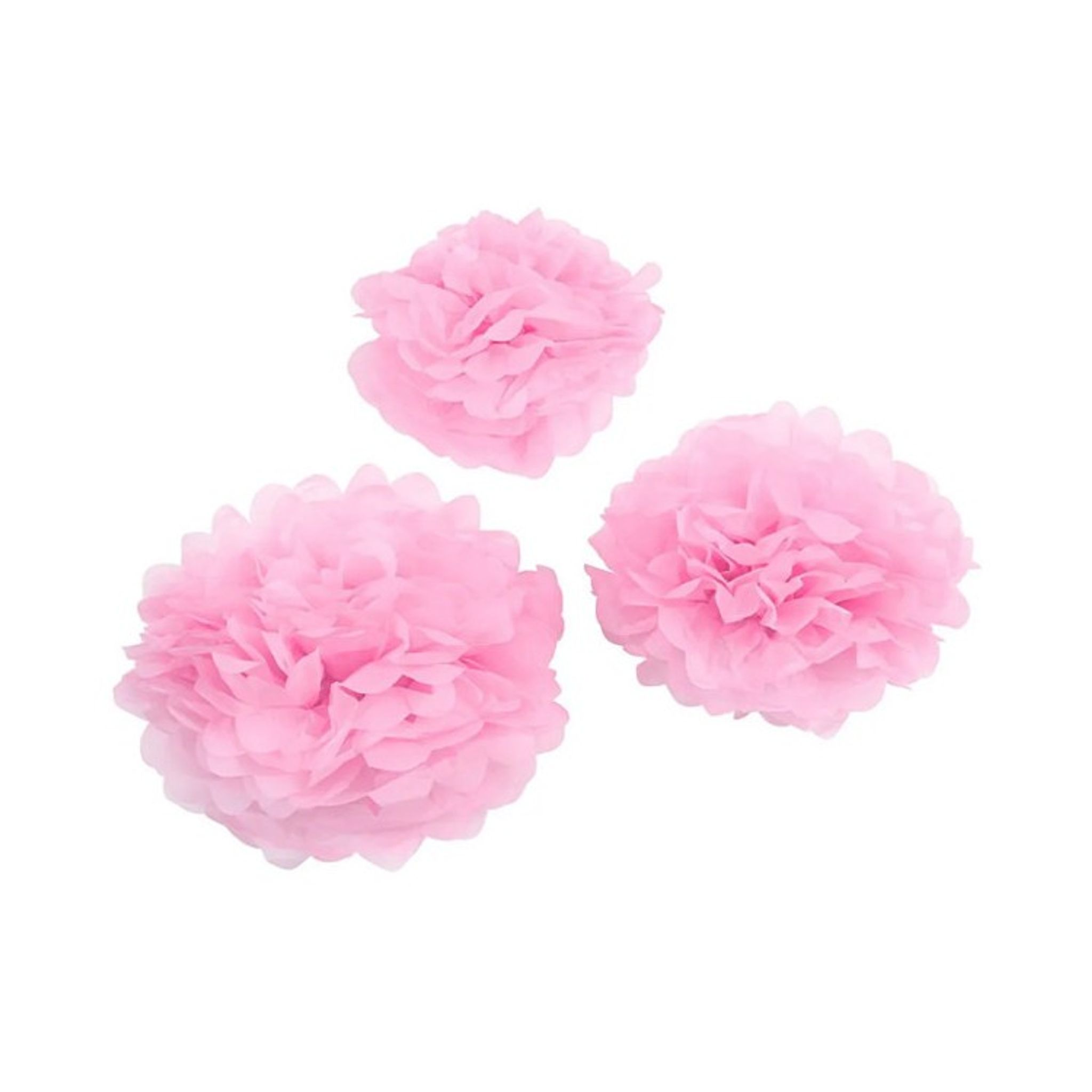 3 st ljusrosa pappersbollar, pom poms att dekorera med på kalas och fest. Storlek: 20 cm, 24 cm och 30 cm DIY - Du vecklar själv ut bollarna