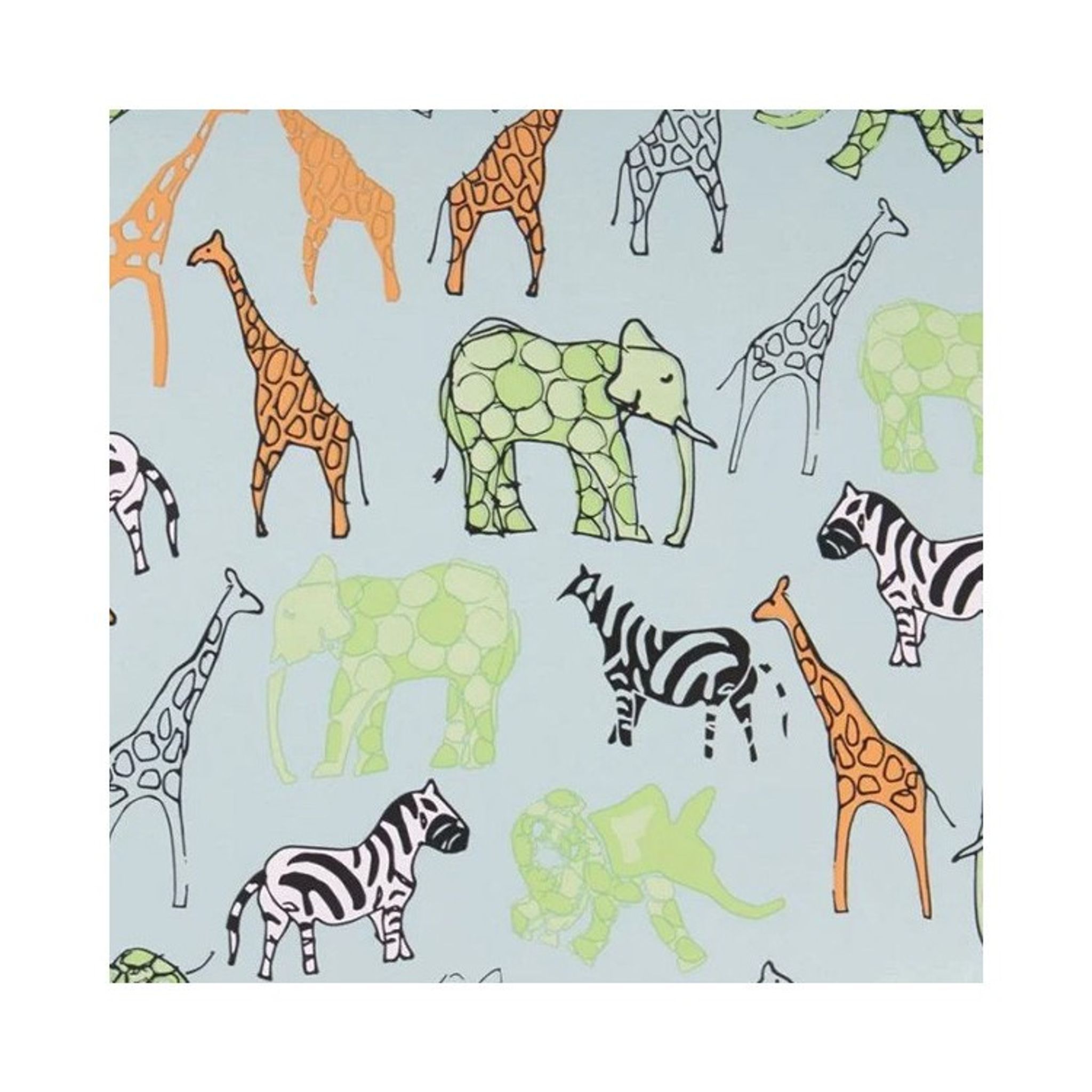 Presentpapper med ljusturkose bottenfärg och print med djungeldjur i olika färger. Ett färgglatt presentpapper för att få till bästa möjliga presentinslagning till barnpresenten. Oavsett om du ska på djungelkalas eller barnkalas med annat tema är detta papper utmärkt att slå in små gåvor eller presenter i!