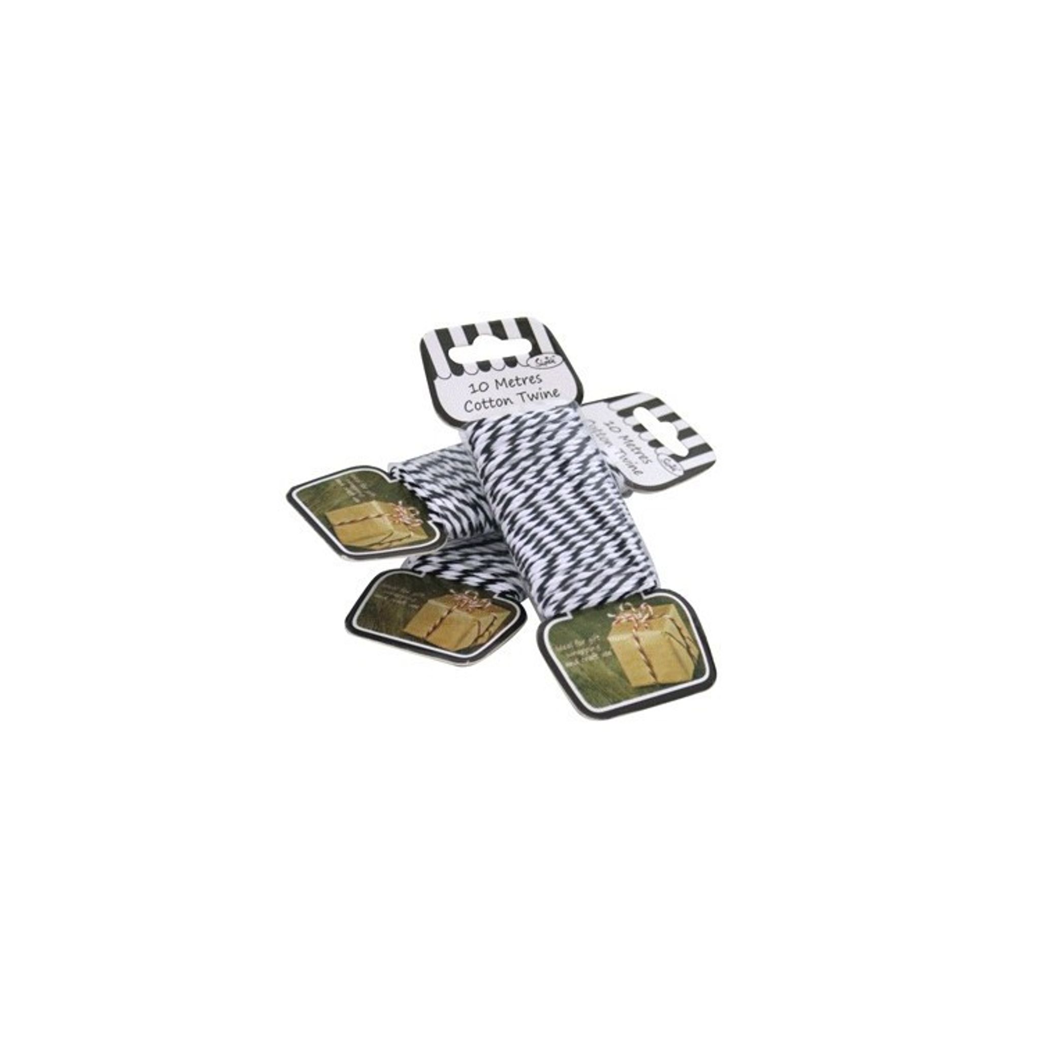 10 meter tvinnat bomullssnöre i svart och vitt. Fint som dekoration till paketinslagning eller annat pyssel