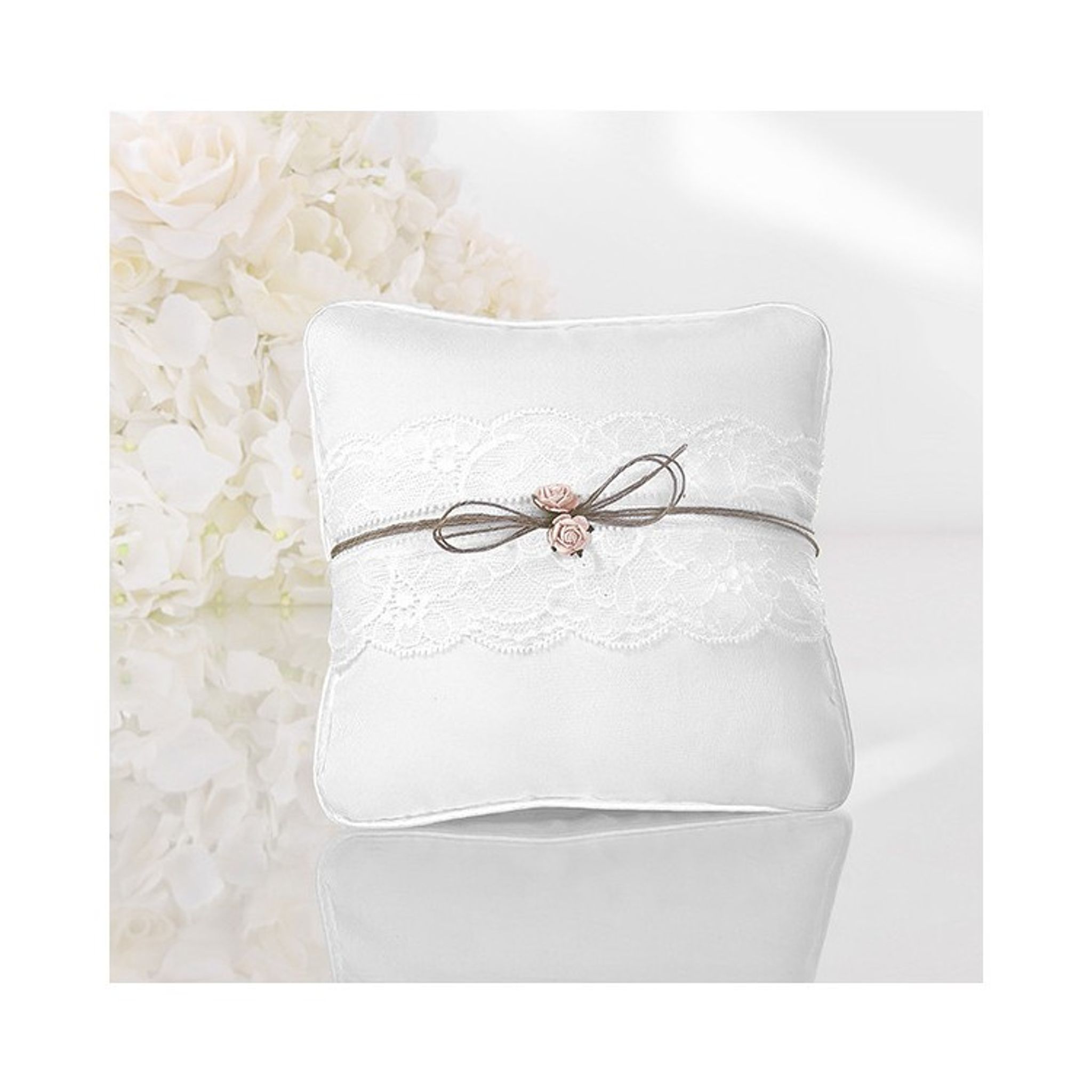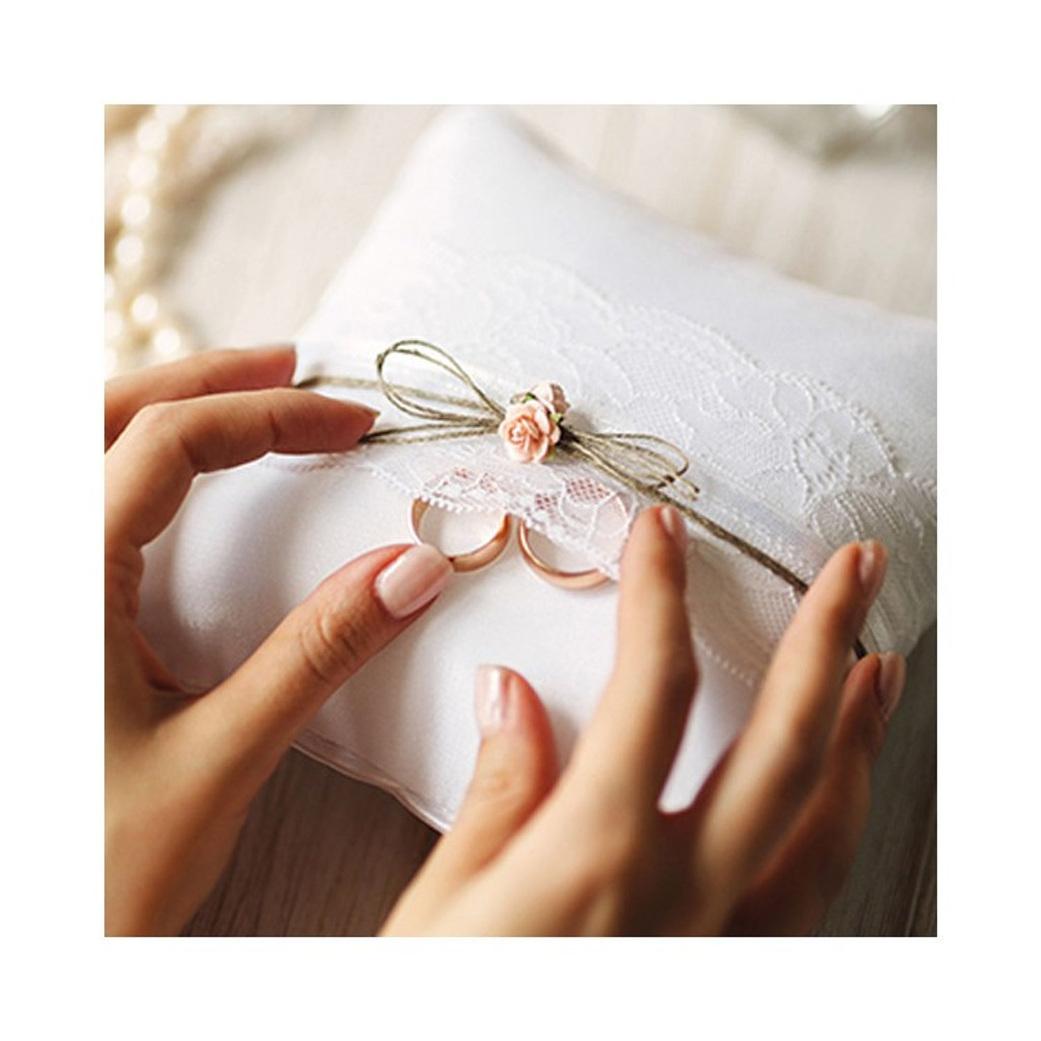 Lägg vigselringarna på en vacker ringkudde! Denna ringkudde, i matt vitt tyg, är en extra fin förvaring av ringarna på bröllopsdagen. Storlek: 16 x 16 centimeter