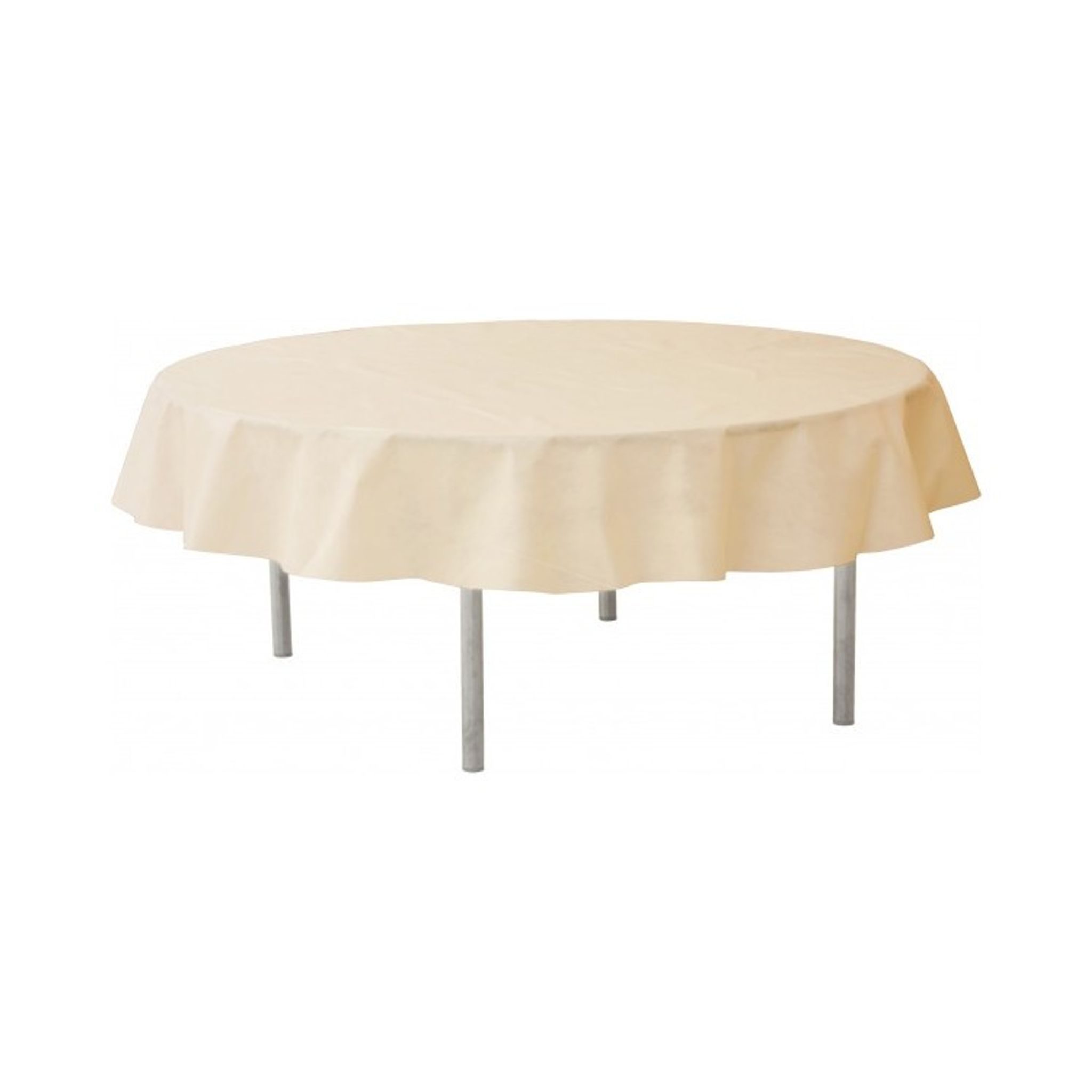 Rund Bordsduk Krämvit. Krämfärgad snygg och elegant bordsduk i engångsmaterial. Passar alla typer av festliga tillställningar, allt ifrån Halloween till 30, 40, 50 och 60-års festen! Bordsduken är rund och är tillverkad av ett tygliknande material. Att hitta en rund duk till ditt runda bord kan ibland vara en utmaning, med denna duk är problemet snabbt löst och dessutom blir det snabbt en snygg dukning.