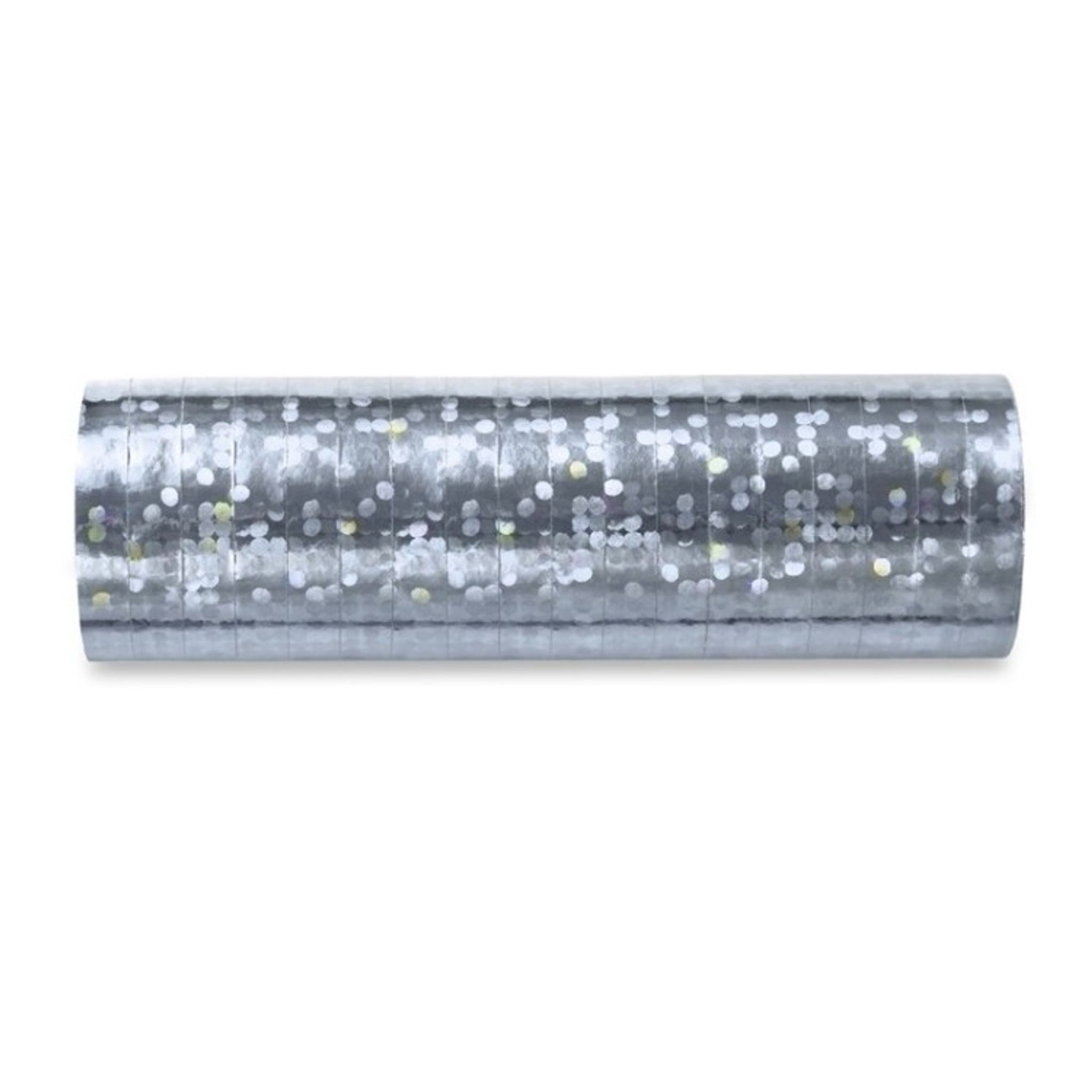 1 st rulle med härligt silverglittrig serpentin. Dekorera med serpentiner på kalaset och festen för en riktigt fin kalasdukning. (3,8 m)