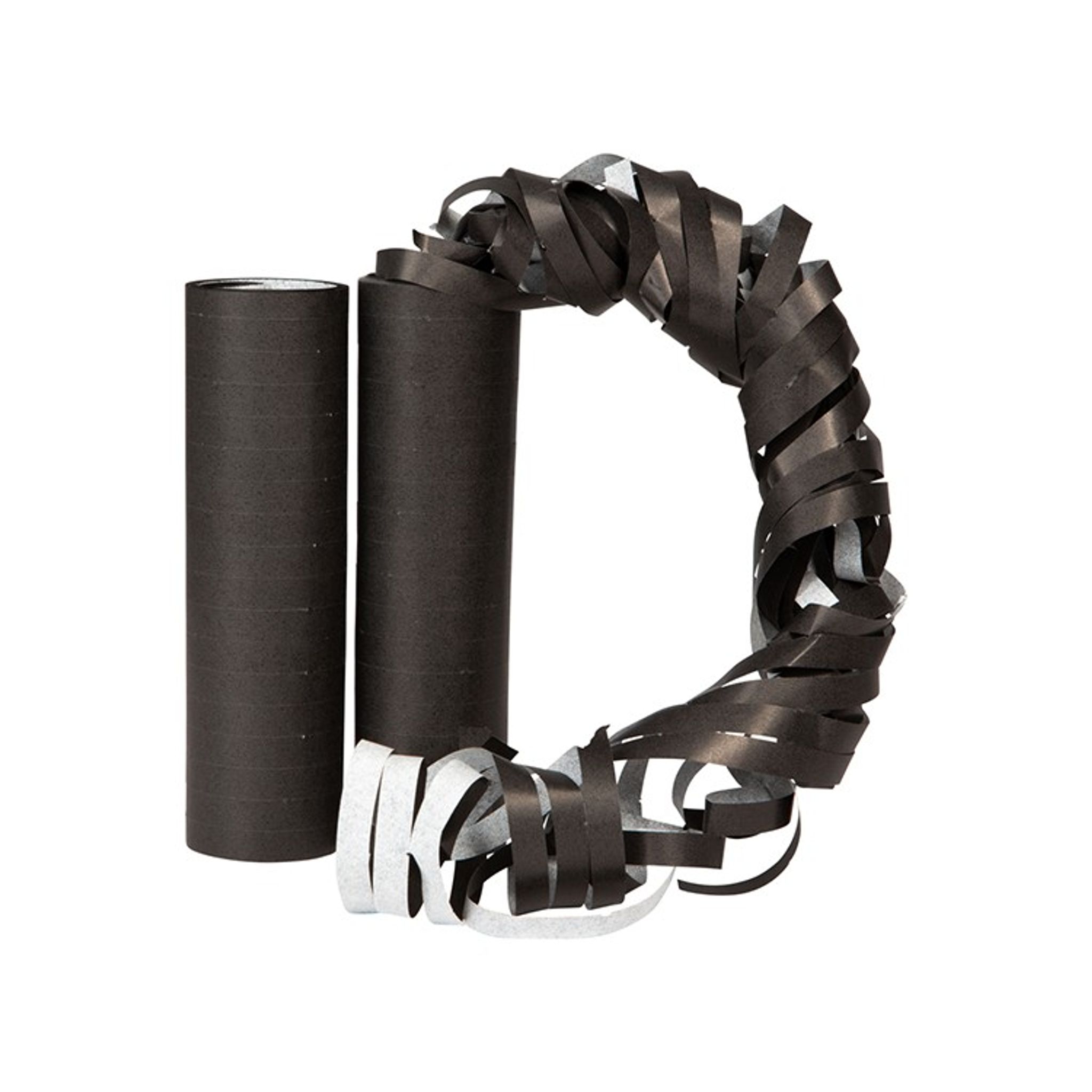 Svarta serpentiner i 2 pack. Använd och dekorera under fest eller kalas genom att antingen hänga upp dem eller blåsa ut dem över boret.