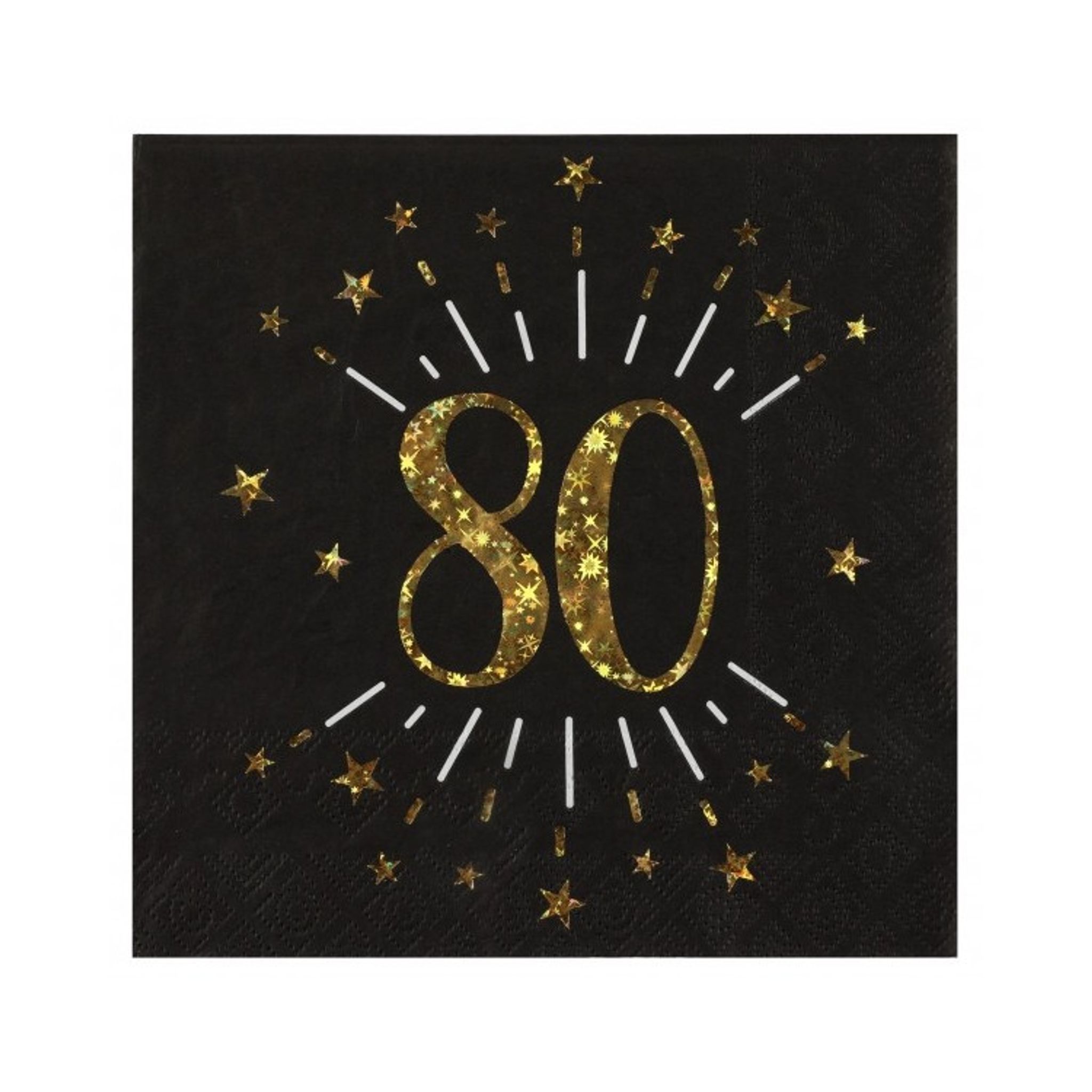 Lunchservetter i svart med siffran 80 som snygg dekoration. Servetterna passar mycket fint till dig som skall anordna ett 80års-kalas för dig själv eller kanske till någon som du vill överraska.
