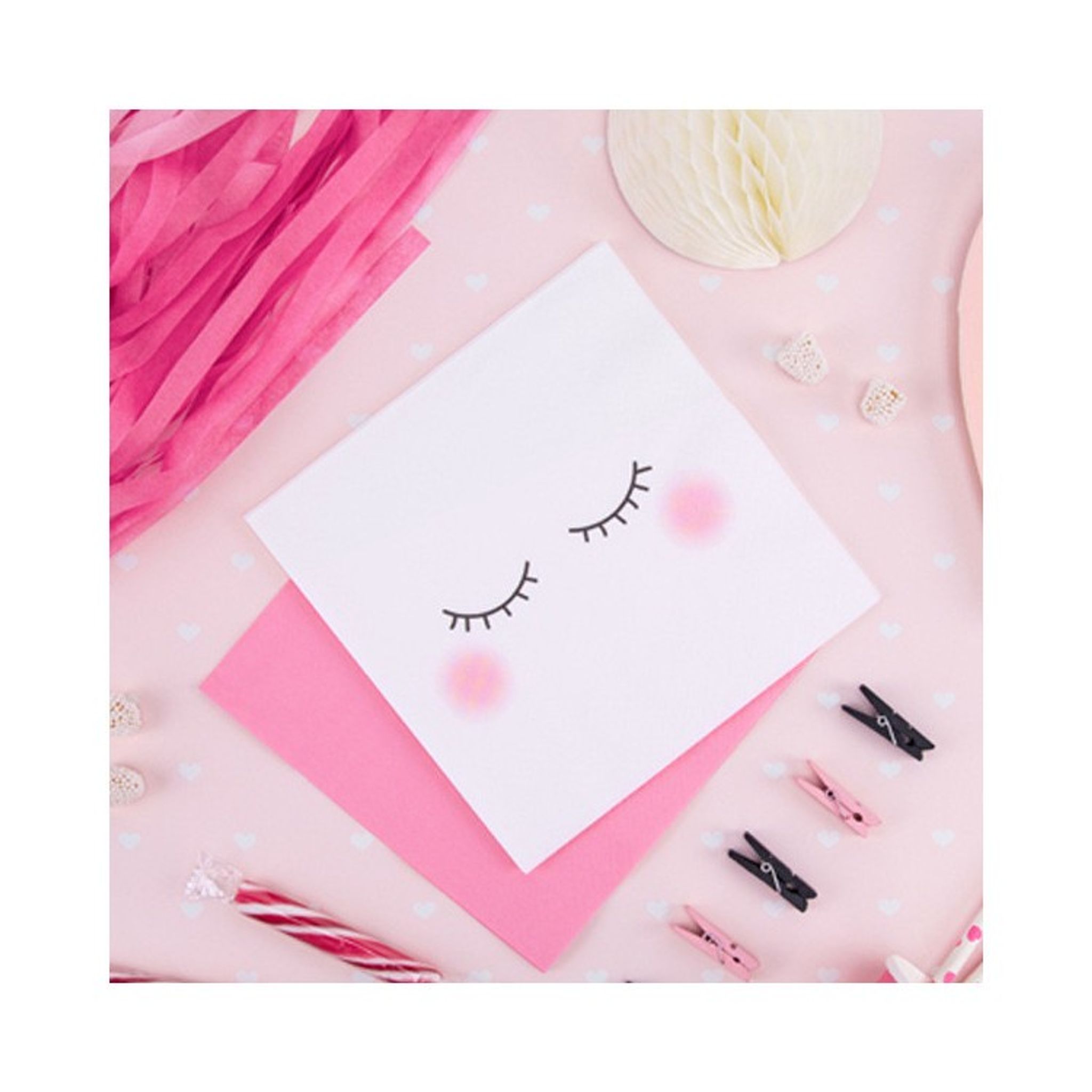 Söta servetter i form av ett ansikte med rosa rodnande kinder. Gulliga att duka upp med på exempelvis dopet. Tillsammans med andra dukningsartiklar i rosa eller vitt blir dopdukningen extra fin. Servetterna är också utmärkta till barnkalaset, som en fin detalj på det dukade kalasbordet! Förpackningen innehåller 20 st servetter. Storlek: 33 x 33 cm i utvikt mått